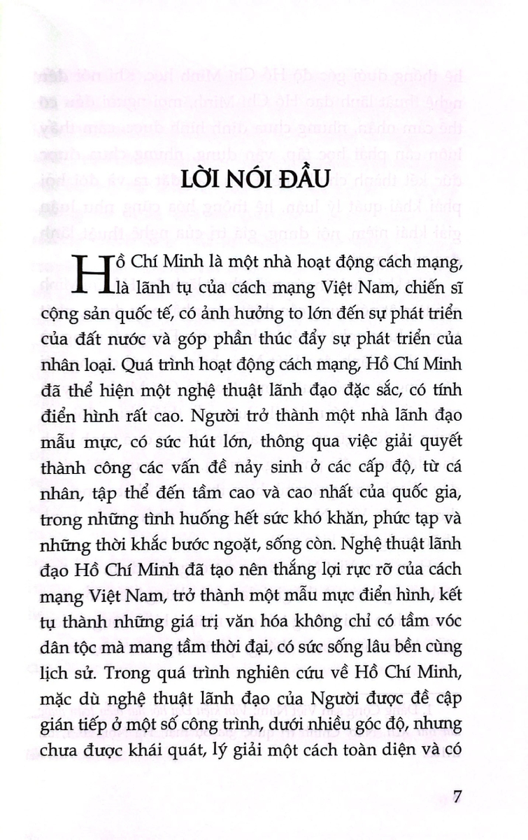 Nghệ Thuật Lãnh Đạo Hồ Chí Minh Với mong muốn đi sâu nghiên cứu, làm rõ nét đặc sắc trên, Nhà xuất bản Chính trị quốc gia Sự thật xuất bản cuốn sách Nghệ thuật