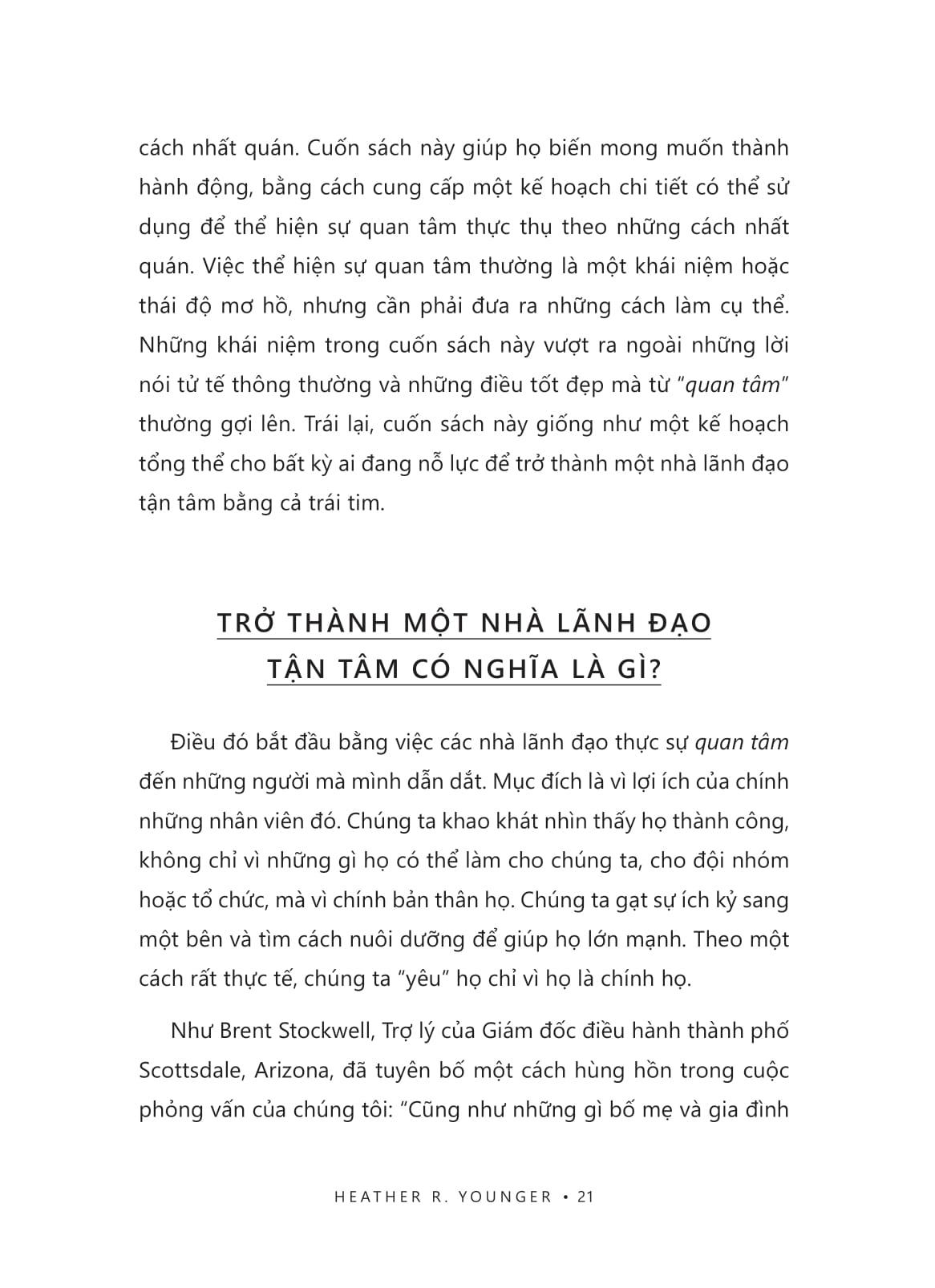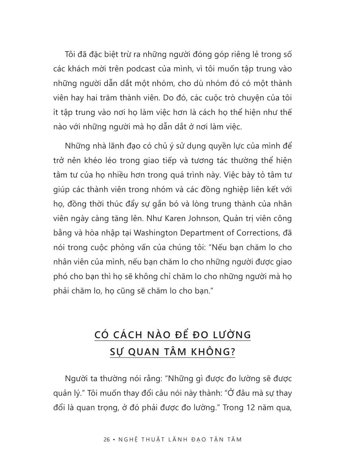 Nếu bạn là những nhà lãnh đạo muốn sử dụng lòng nhân ái và sự quan tâm để dẫn dắt đội nhóm của mình đạt tới thành công, hãy bắt đầu hành trình của bạn từ chính cuốn sách này.