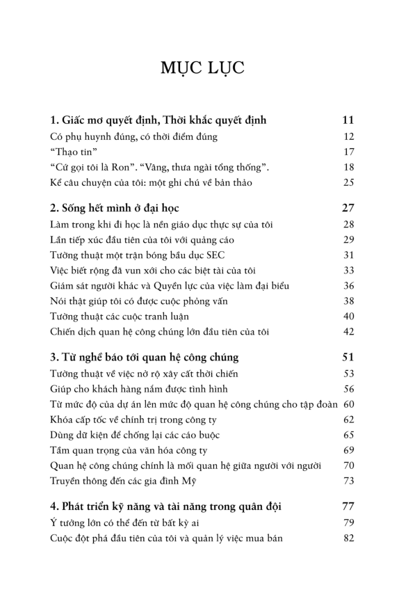 Harold Burson, người được PRWeek mô tả là “nhân vật nhiều ảnh hưởng nhất của ngành PR trong thế kỷ 20”, có lẽ là cái tên nổi bật nhất trong ngành này hiện nay. Nhà sáng lập của Burson-Marsteller khổng lồ đã có một sự nghiệp 70 năm lừng lẫy, xây dựng một tập đoàn toàn cầu từ một công ty tư vấn chỉ có một người. Trong cuốn hồi ký hấp dẫn và giàu thông tin này, Burson lần lại sự nghiệp mình, từ lúc học tại Ole Miss tới lúc phục vụ trong Thế chiến II, làm nhiệm vụ tường thuật các phiên tòa Nuremberg, rồi bắt tay với Bill Marsteller, cùng nhau làm nên lịch sử trong một doanh nghiệp rồi sẽ trở thành một trong những công ty lớn nhất thế giới về mảng này, với hơn 60 văn phòng trên sáu lục địa.