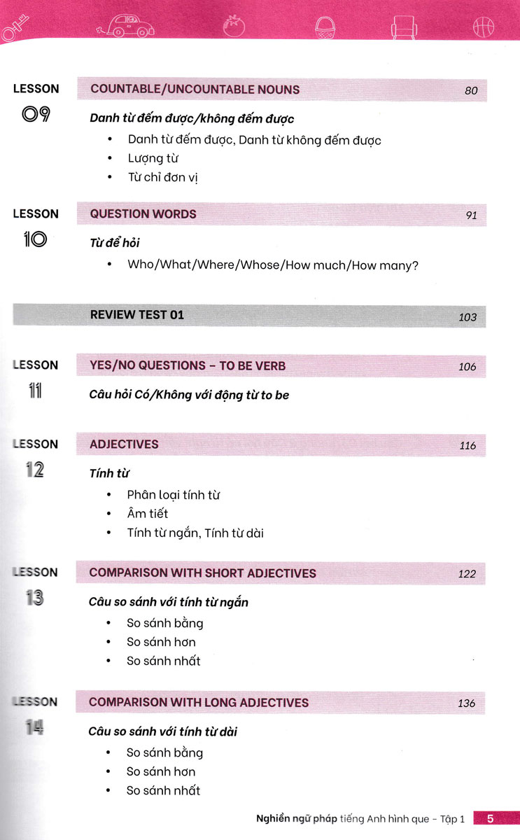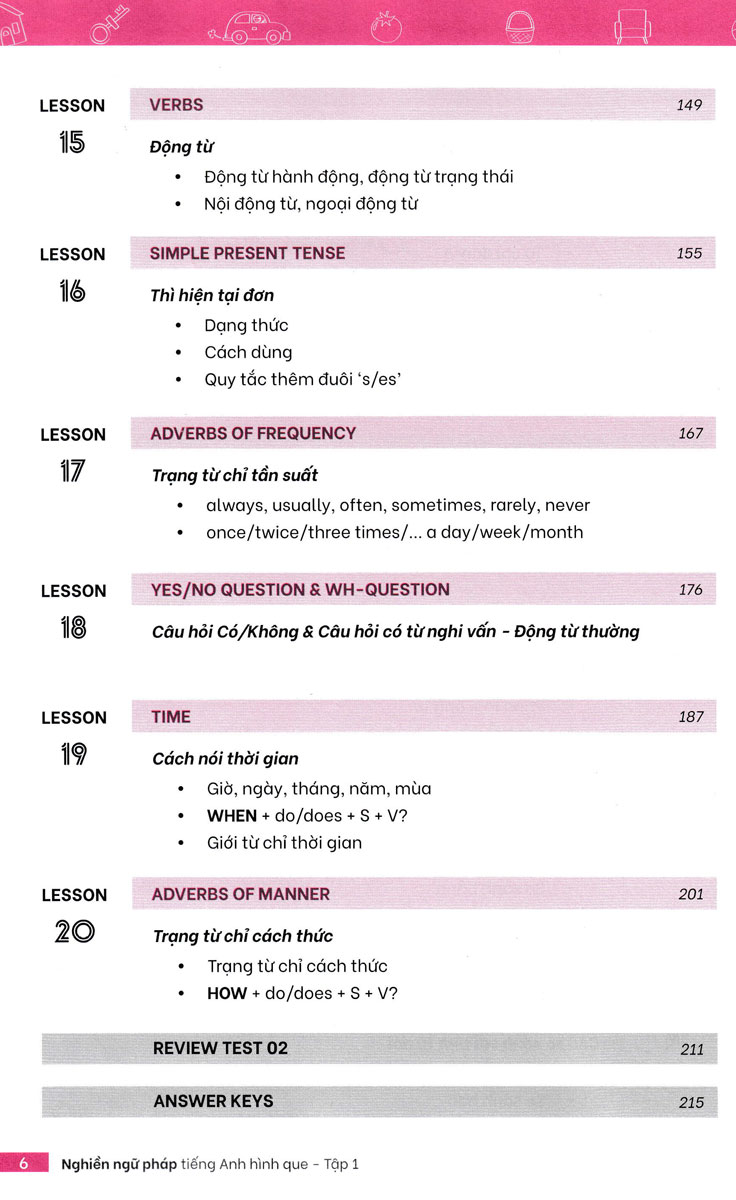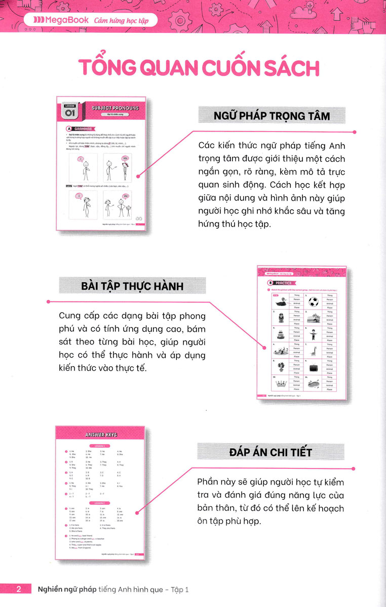 Các chủ điểm ngữ pháp Tiếng Anh cơ bản , cô đọng , dễ hiểu , dễ nhớ -Bài tập thực hành đa dạng kèm hình ảnh minh họa sinh động -Làm chủ ngữ pháp
