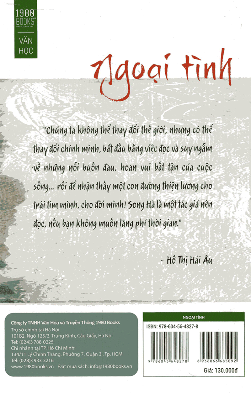 Tác phẩm Ngoại tình là phiên bản 2.0 của cuốn “Nhật ký XIZ” đã xuất bản trước đây. Sách là tuyển tập 46 truyện ngắn và tản văn, với sự bổ sung nhiều câu chuyện mới và tâm huyết nhất của Song Hà. Tron...