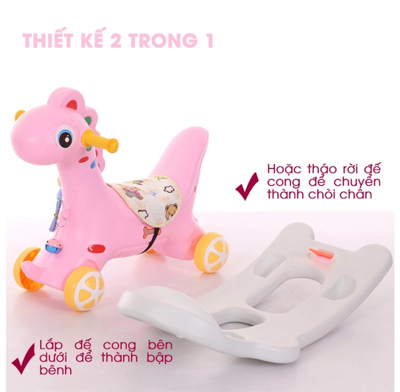 ✨Ngựa bập bênh kết hợp xe chòi chân có nhạc cho bé