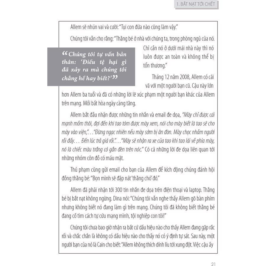 Riêng với các bậc phụ huynh, cuốn sách này sẽ là những chỉ dẫn quan trọng, giúp bố mẹ hiểu rõ hơn về tình huống của con trẻ để từ đó hỗ trợ con mình thoát ra khỏi những ảnh hưởng tiêu cực của việc bắt nạt.
