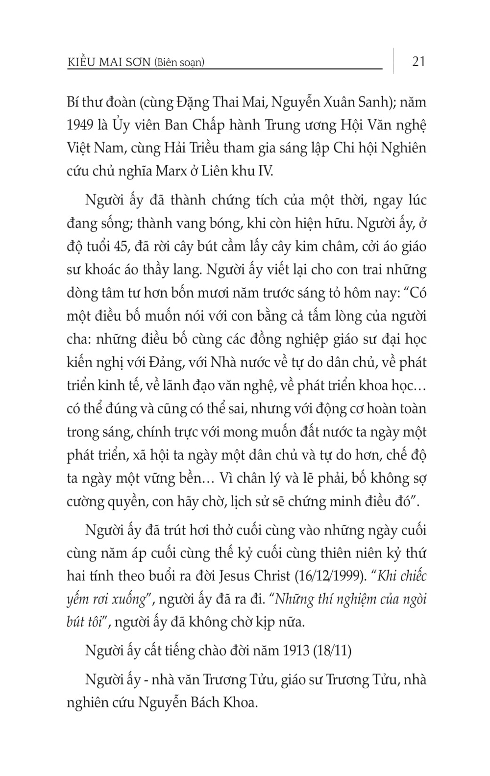 Nhà văn – Giáo sư Nguyễn Bách Khoa – Trương Tửu (1913-1999) là một trong những nhà lý luận phê bình tài ba nhất của thế hệ tiền chiến, một trong những người đi tiên