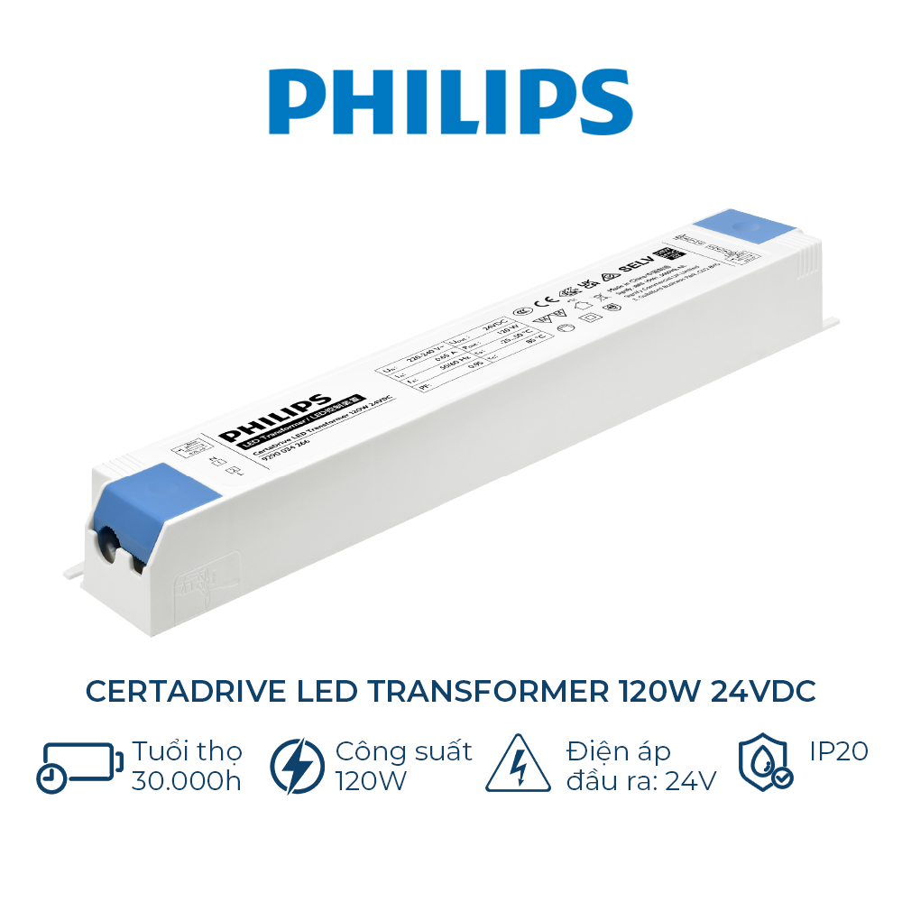 Nguồn led dây 24V philips certadrive led transformer120w 24VDC, #ledphilipsvietnam