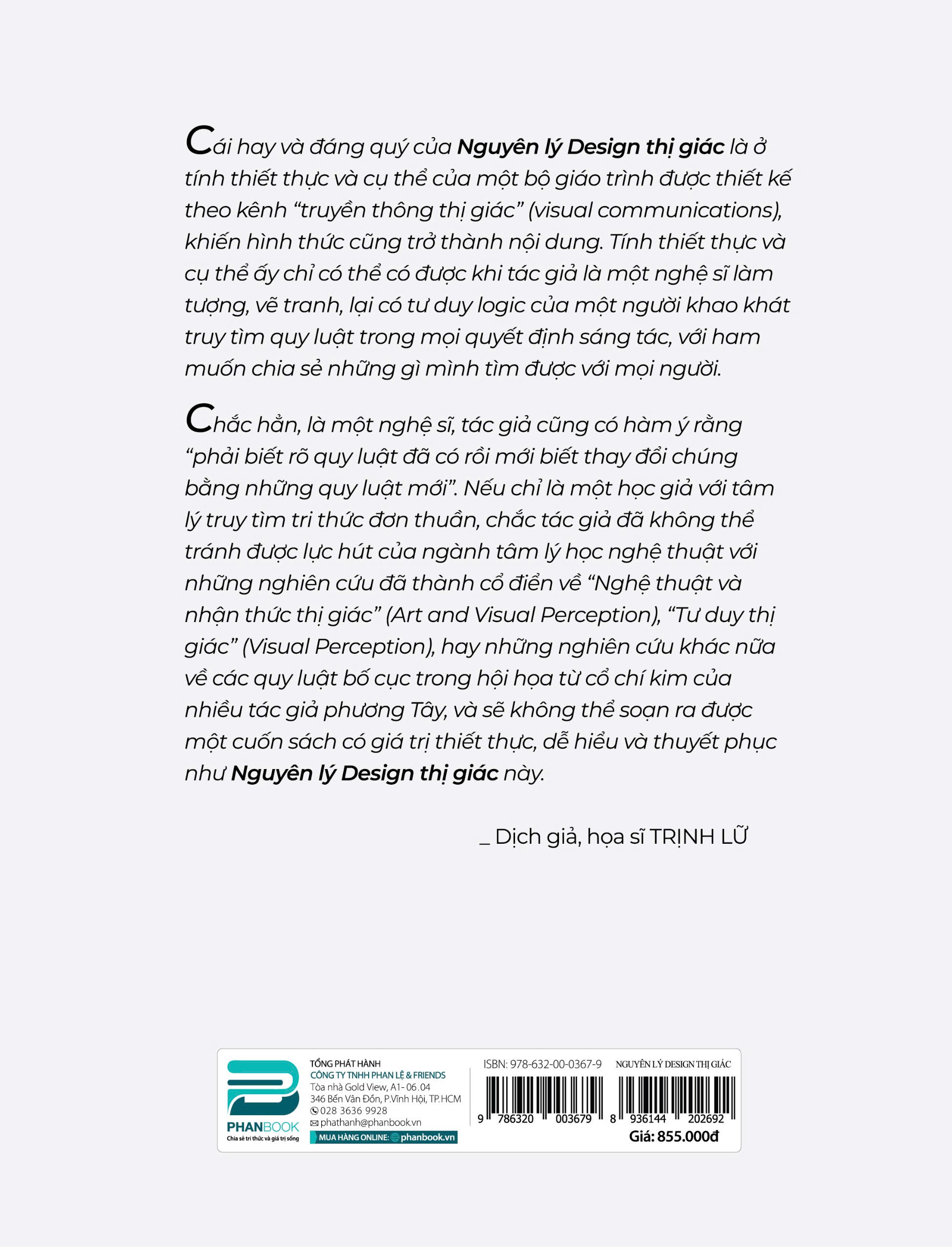 THÔNG TIN  TÁC PHẨM Tên tác phẩm: NGUYÊN LÝ DESIGN THỊ GIÁC Tác giả: Nguyễn Hồng Hưng Thể loại: Sách tham khảo Hình thức: Bìa cứng - In màu Số trang: 624 trang Khổ: 18.4 x 24.4 cm Nhà xuất bản: NXB Dân Trí Đơn vị phát hành: PHANBOOK Năm phát hành: 11/2025