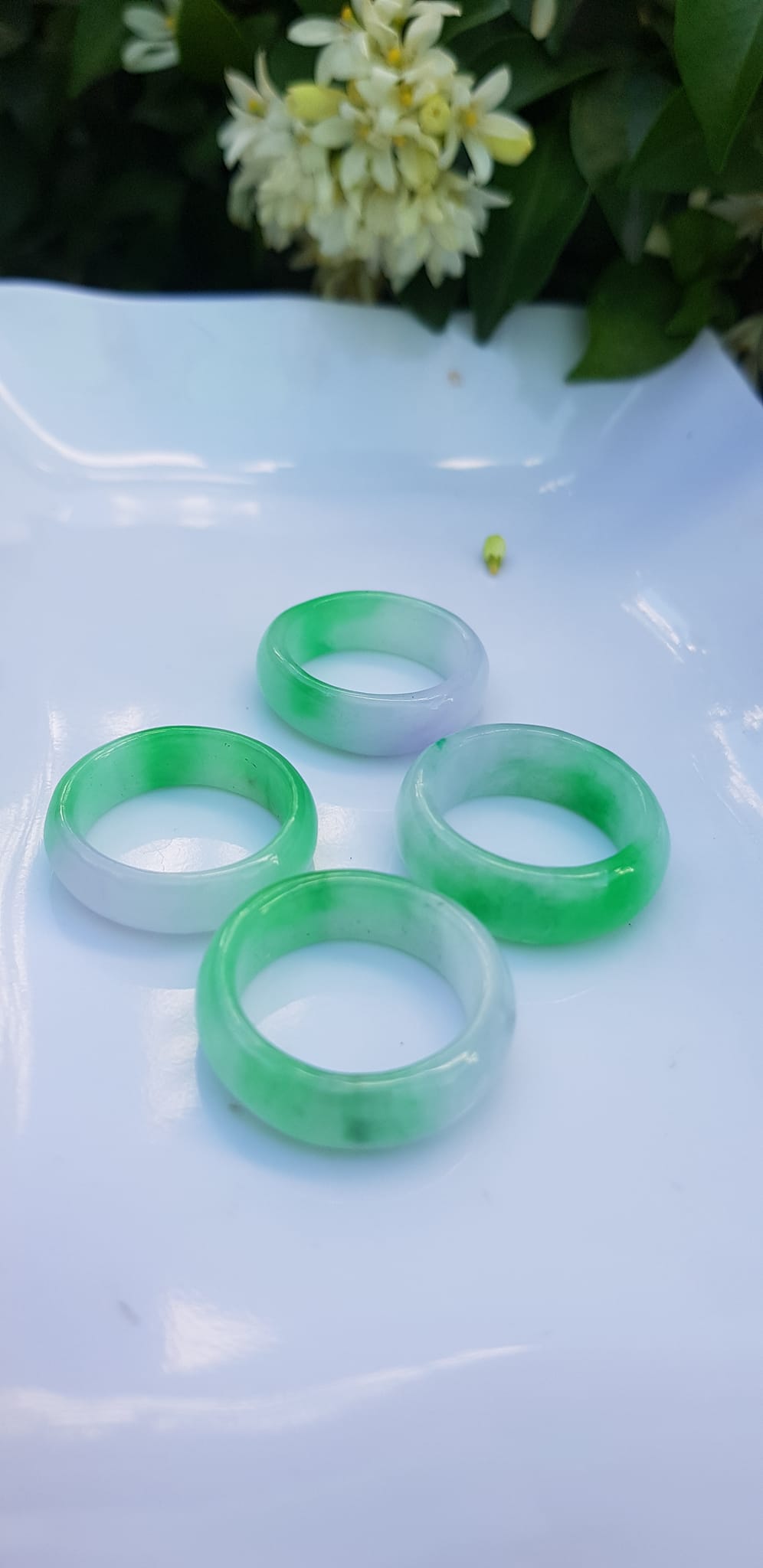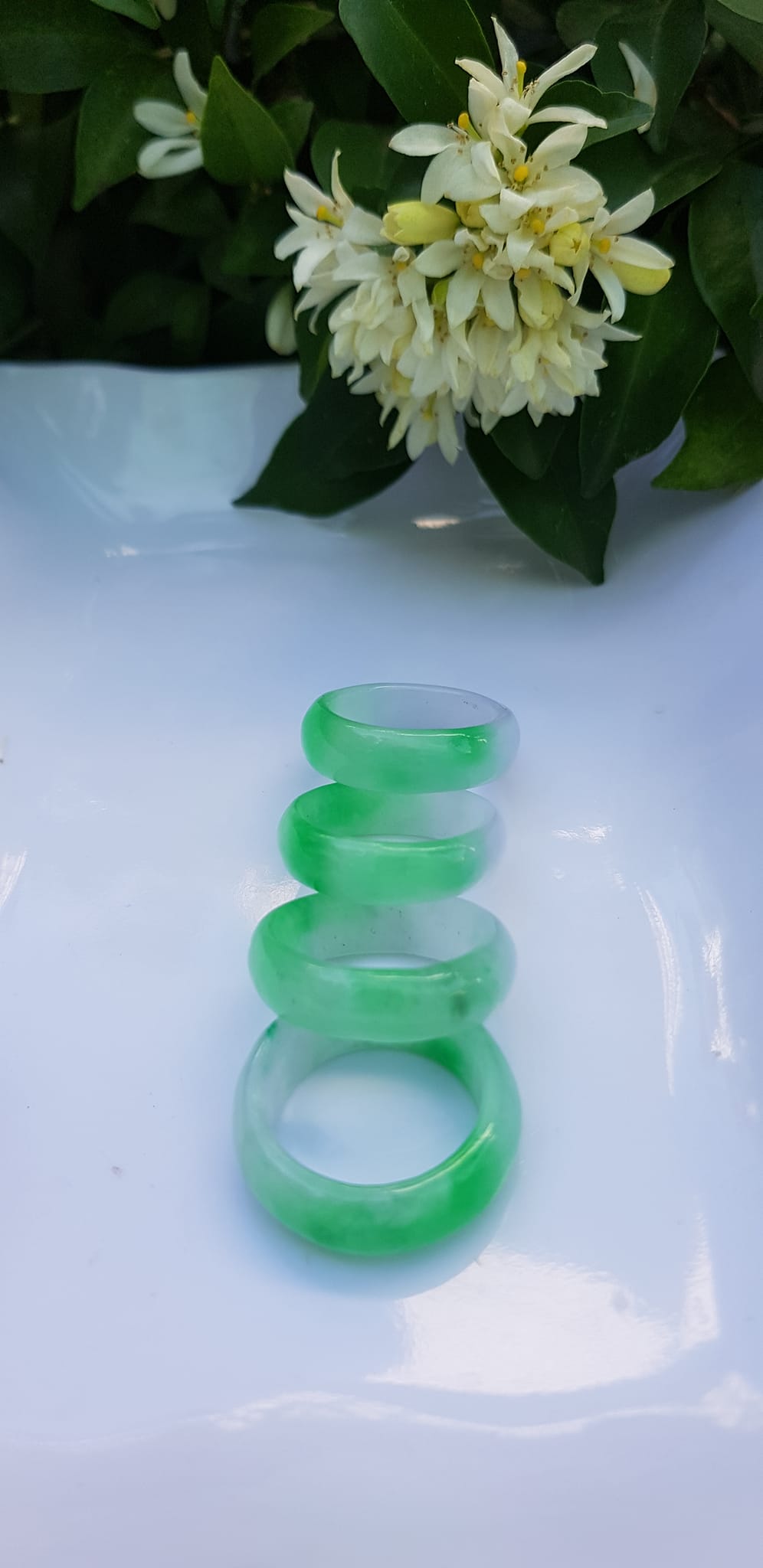 Nhẫn đeo tay nữ đá cẩm thạch tự nhiên Màu xanh lý tươi trắng bóng rất đẹp Nhẫn Ni 17mm x cao 6mm/7mm ạ