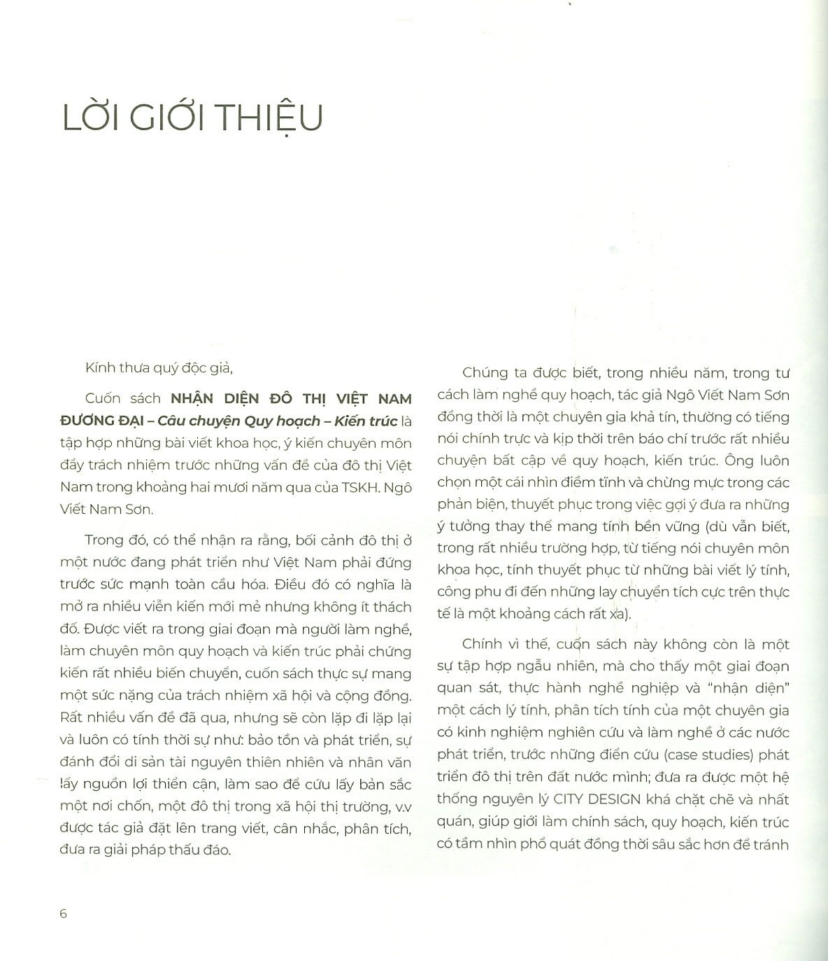 Kiến trúc và Quy hoạch là câu chuyện khó để trần thuật, nhưng sẽ rất hấp dẫn nếu ta đặt vào trong mối tương quan với lịch sử, văn hóa, những chuyển biến thời cuộc chính trị xã hội. Cuốn sách này đưa ra một bức tranh sống động, một sự nhận diện thấu đáo những chân dung, căn tính đô thị Việt Nam từ nhãn quan của một kiến trúc sư, nhà khoa học quy hoạch quan tâm tới lịch sử, ký ức, cả những bối cảnh có tính đương đại đặt lên sinh phận của mỗi một đô thị và nơi chốn mà chúng ta có thể từng sống, đang sống và gắn bó.