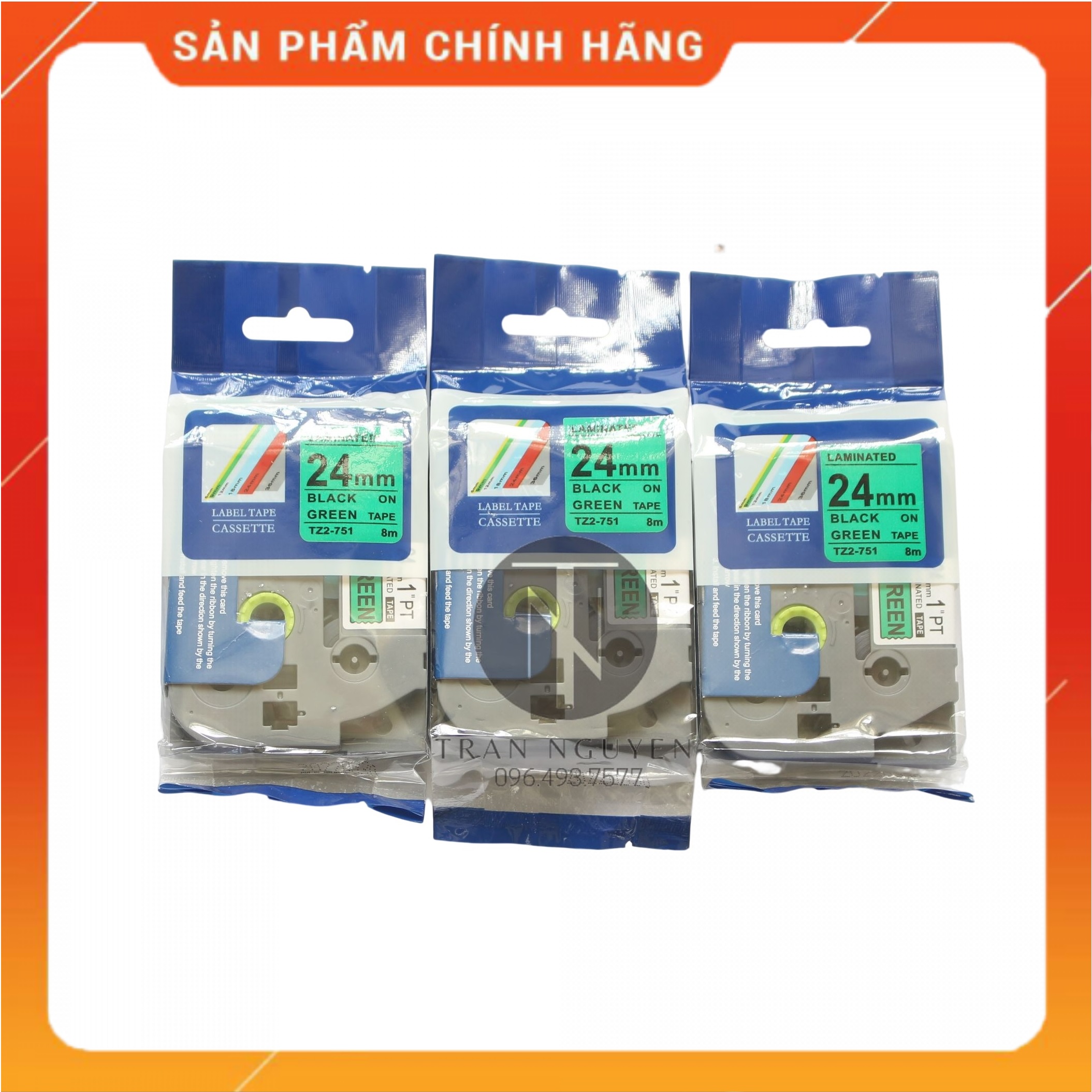 ✨Nhãn In Brother Tz2-751 - Đen nền xanh lá 24mm x 8m - Hàng nhập khẩu