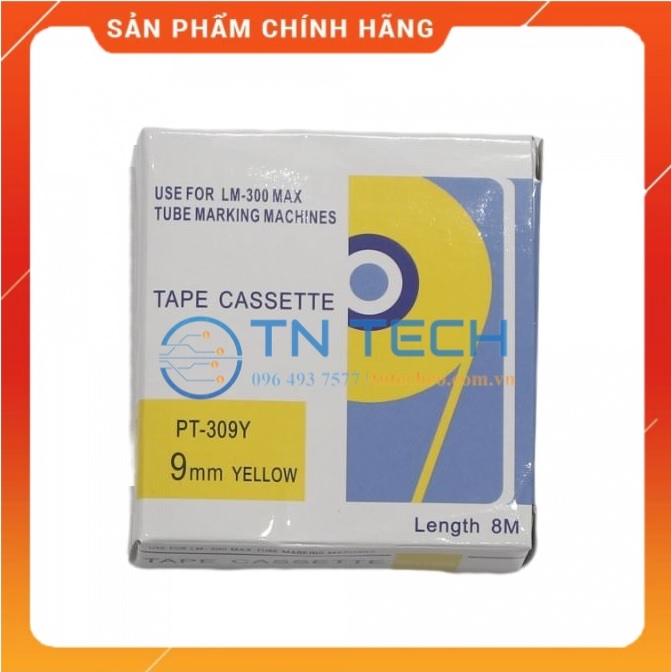 Nhãn vàng LM-TP309Y (9mm, 8m/cái) - Kích thước: 9mm ngang - Xuất xứ: Nhật Bản - Sử dụng cho máy in LM-380E, LM-380A, LM-390A
