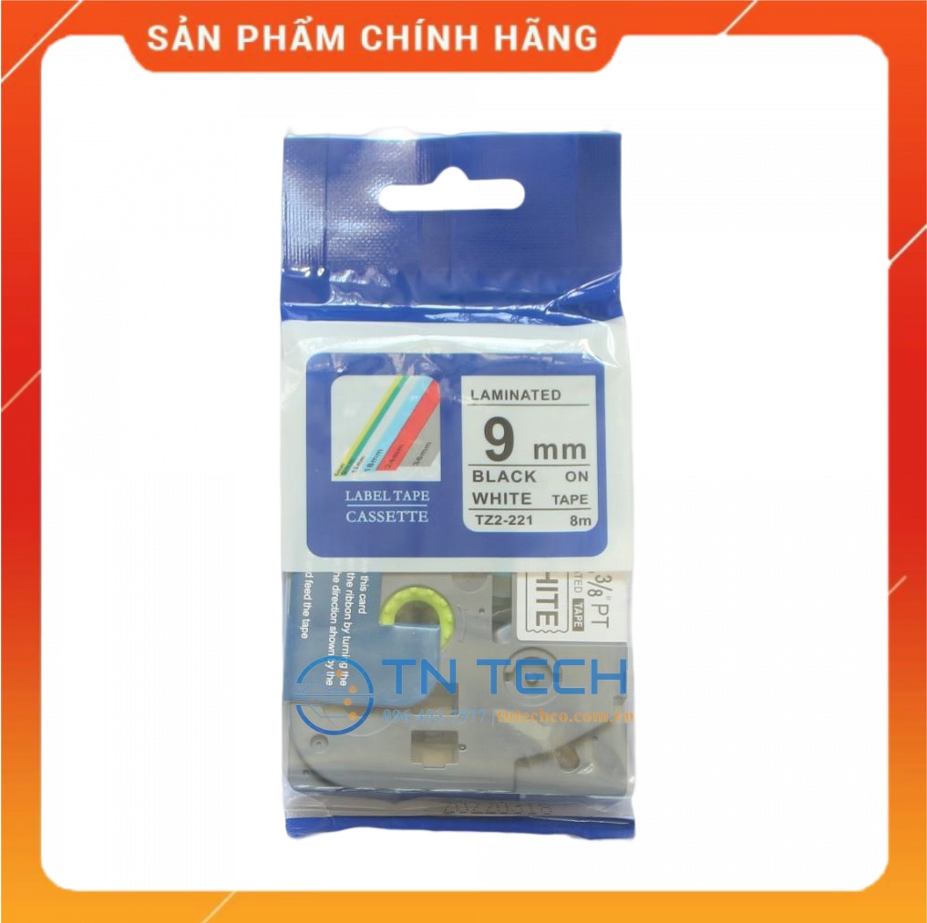 Nhãn in TZ2-221 Brother Nhãn in đa lớp sử dụng cho máy in nhãn Brother, tất cả trong 1, mực nằm bên trong, chống chịu dung môi, hóa chất, nước, dầu mỡ, nhiệt độ Mã