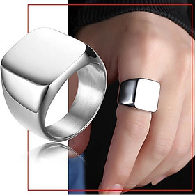Nhẫn nam titan thép không gỉ inox cao cấp thời trang mặt trơn vuông to trangsucpt màu trắng PTNNA23