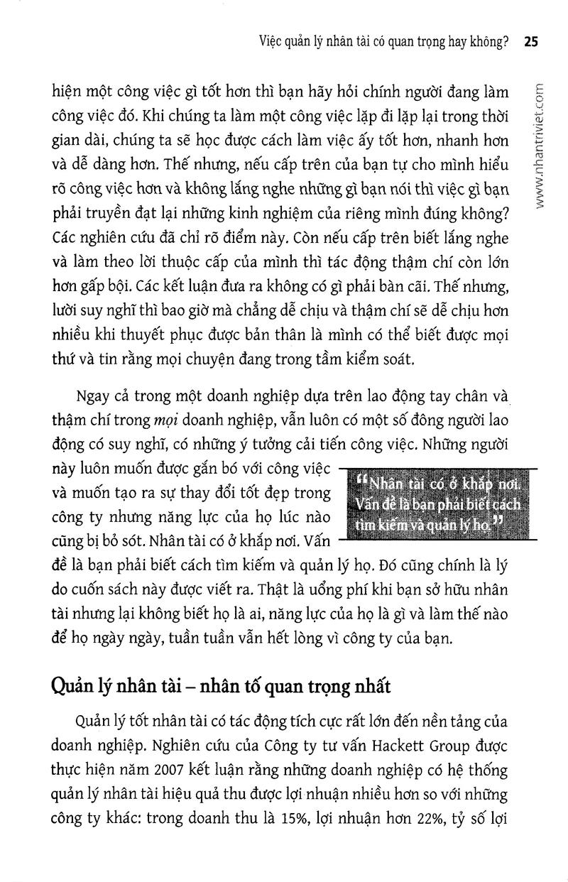 Nguồn nhân tài cho doanh nghiệp hoàn toàn không thiếu. Có chăng là thiếu những nhà quản lý có khả năng phát hiện, tuyển dụng, phát triển và giữ chân nhân tài. Cuốn sách này hướng dẫn bạn cách trở thành một nhà quản lý có tài phát huy tối đa tiềm năng của nhân viên.