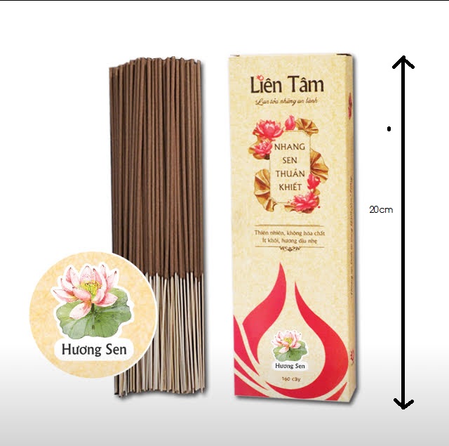 ✨Nhang sen thuần khiết Liên Tâm 20.5cm - 160 cây - hương sen, 100% thiên nhiên, ít khói, mùi dịu nhẹ, dùng cho chung cư, phòng máy lạnh