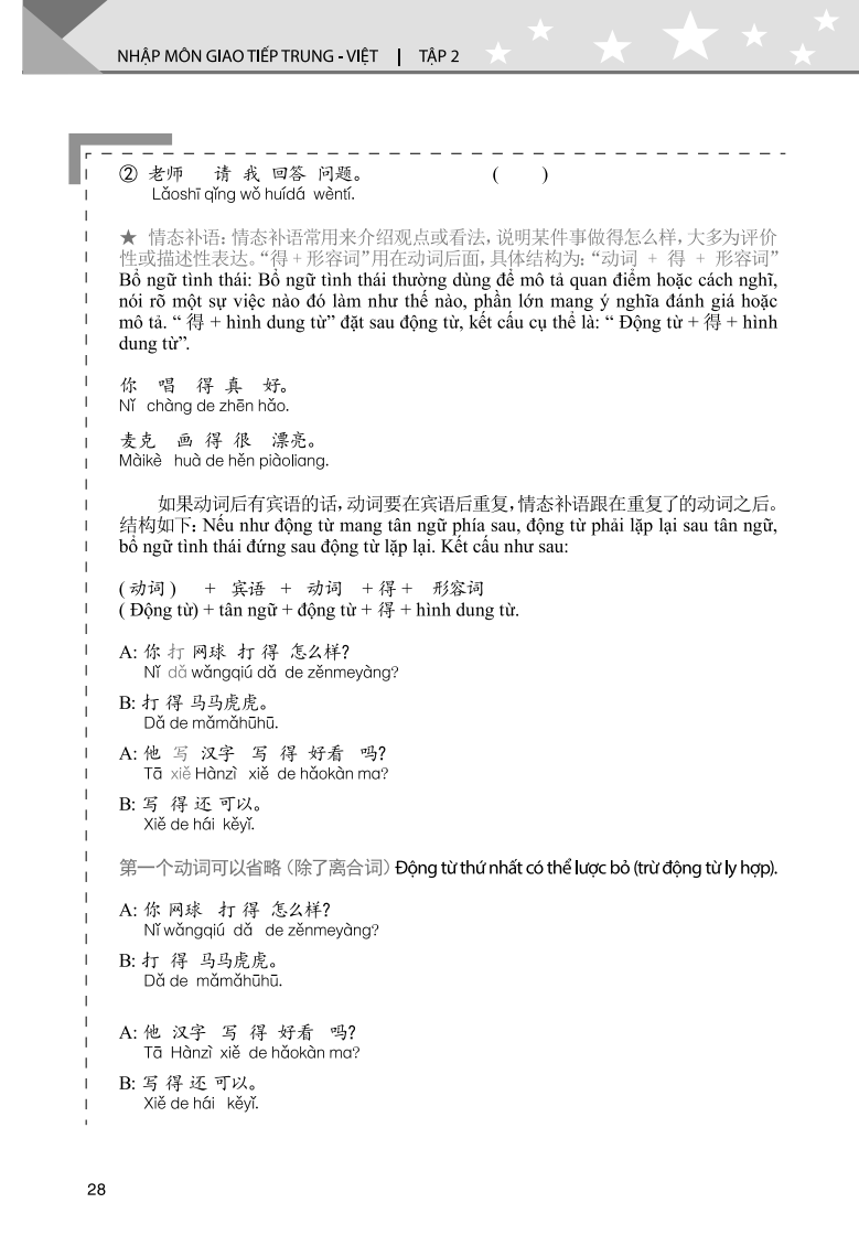 Nhập Môn Giao Tiếp Trung Việt - Tập 2 Bộ giáo trình: Nhập môn giao tiếp Trung Việt dành cho người bắt đầu học, cả bộ giáo trình gồm 25 bài học, hơn 1800 từ