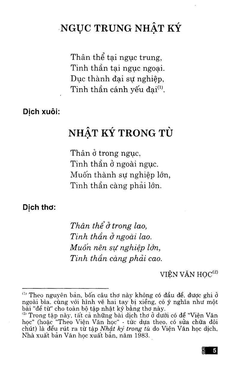Chủ tịch Hồ Chí Minh là vị lãnh tụ thiên tài của Đảng và nhân dân Việt Nam, anh hùng giải phóng dân tộc, danh nhân văn hoá thế giới. Người kết tinh trong mình những phẩm chất và giá trị tinh thần cao quý nhất của giai cấp công nhân và dân tộc việt Nam. Cuộc đời, sự nghiệp của Người là một tấm gương sáng vì dân, vì nước. Trong suốt cuộc đời hoạt động cách mạng, Người đã trải qua nhiều khó khăn, gian khổ, thậm chí nguy hiểm đến tính mạng, nhưng dù bất kỳ hoàn cảnh nào. Người cũng vẫn luôn lạc quan, tin tưởng vào thắng lợi của cách mạng. Tinh thần ấy thể hiện rõ trong nhiều trước tác của Người, trong đó tập thơ Nhật Ký Trong Tù.
