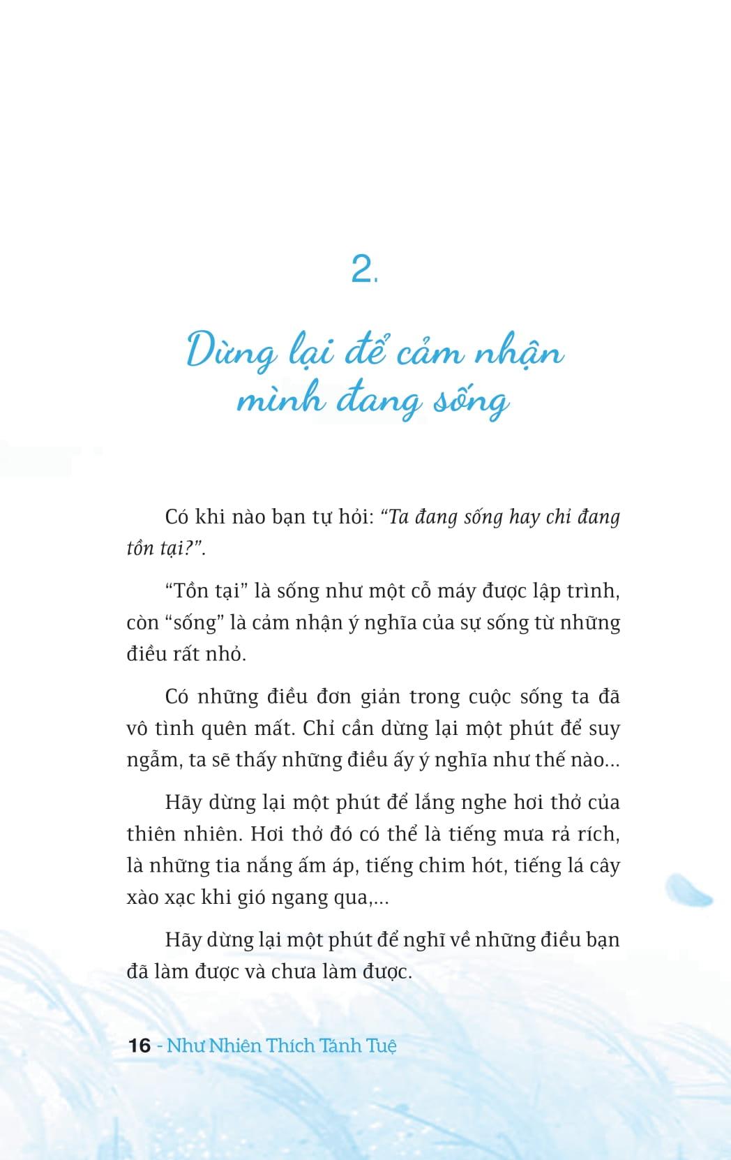 Sách còn truyền cảm hứng sống một cuộc đời ý nghĩa, ngát hương thiện lương. Sâu thẳm trong lòng mỗi người, có lẽ ai cũng biết rõ rằng sẽ có ngày m.ình phải rời xa cuộc đời và sự chết có thể xảy ra bất cứ lúc nào. Giá trị một đời người không phải là sống dài lâu mà nằm ở chỗ người ấy đã làm được những điều gì tốt cho bản thân và cuộc đời.