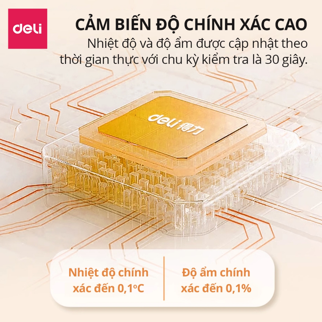 ✨Nhiệt ẩm kế, nhiệt kế phòng Deli đồng hồ xem giờ có báo thức đo nhiệt độ phòng, độ ẩm phòng ngủ cho bé chính xác