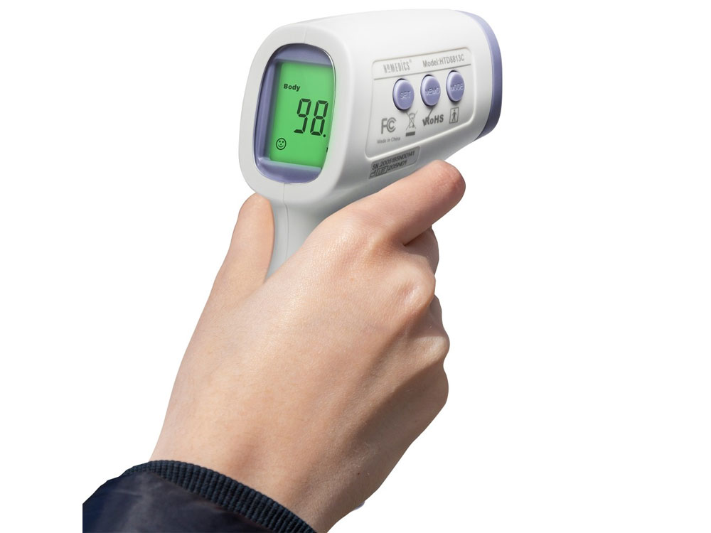 Nhiệt kế điện tử trang bị bộ phận cảm biến hồng ngoại mới nhất không cần tiếp xúc nhưng vẫn biết chính xác được nhiệt độ cơ thể và vật thể.