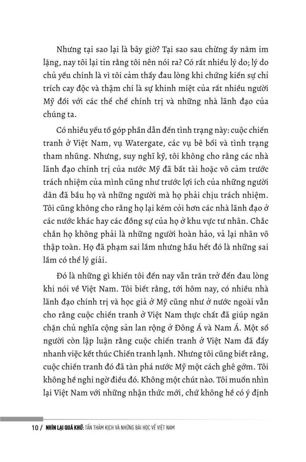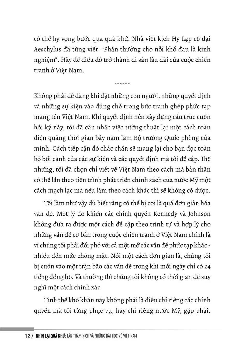 Cuốn sách Nhìn lại quá khứ: Tấn thảm kịch và những bài học về Việt Nam được cựu Bộ trưởng Quốc phòng Mỹ Robert S. McNamara cho ra mắt vào tháng 4/1995, đúng 20 năm sau khi chiến tranh Việt Nam kết thúc. Đây là một bản tự sự đầy day dứt và thành khẩn của một trong những kiến trúc sư chính của cuộc chiến này.