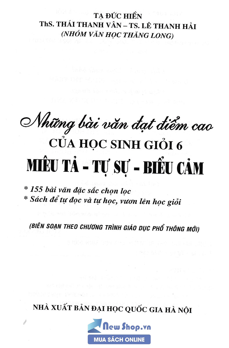 Những Bài Văn Đạt Điểm Cao Của Học Sinh Giỏi Lớp 6 (Biên Soạn Theo Chương Trình Mới) tuyển chọn những bài văn hay, bài văn đặc sắc của học sinh giỏi, đã được điểm cao, đã giành được giải cao trong các kì thi học sinh giỏi cấp quận / huyện, cấp tỉnh / thành phố.
