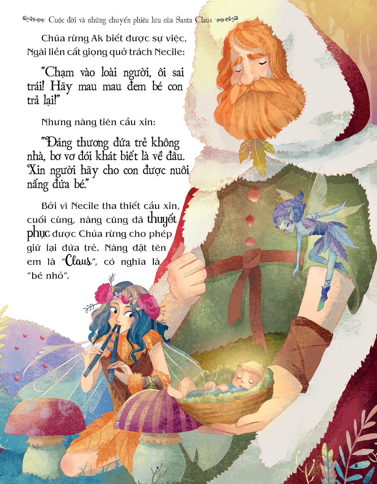 Các câu chuyện được tổng hợp trong cuốn sách đa dạng từ cổ tích: Cuộc đời và những chuyện phiêu lưu của Santa Claus, Sự tích vòng hoa Giáng sinh, Sự tích chim Robin, cho đến những câu chuyện kinh điển như: Bài ca mừng Giáng sinh của Charles Dicken, Chú yêu tinh ở cửa hàng tạp hóa của Andersen, những câu chuyện ngụ ngôn về cuộc đời như Giấc mơ cuối cùng của cây sồi già, sẽ khiến độc giả được chìm đắm trong không khí rộn ràng của mùa lễ hội cuối năm này.