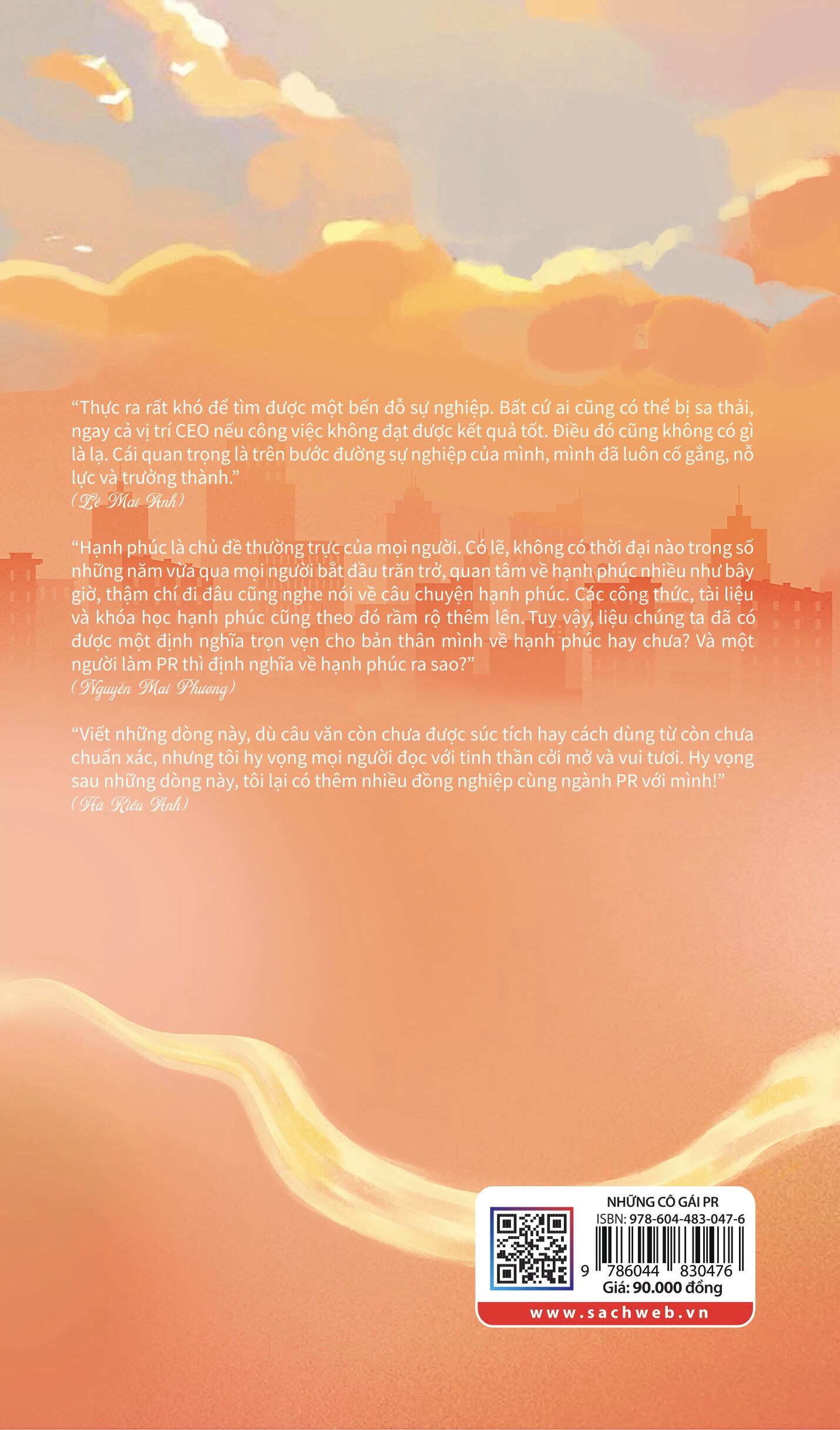 Cuốn sách là sự chia sẻ của 3 cô gái hoạt động trong ngành PR ở 3 giai đoạn khác nhau của sự nghiệp: một cô gái trẻ mới vào ngành; một người ở những gạch nối của sự nghiệp KHI chuẩn bị bước qua “5 năm lần thứ nhất” và một người ở vị trí quản lý, điều hành doanh nghiệp với 18 năm kinh nghiệm.