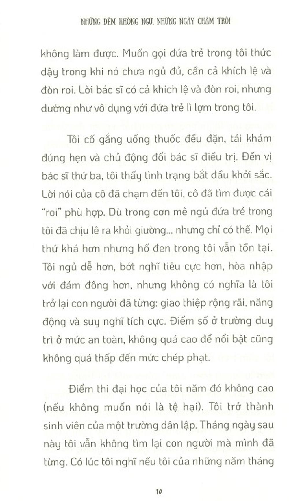 “Những đêm không ngủ, những ngày chậm trôi” là một khoảng lặng giữa những nốt nhạc vội vã chạy nhảy giữa cuộc sống hiện đại, để những con người dù mang trong mình những tổn thương tâm lý hay không đều cùng ngồi lại bên nhau, soi tỏ tâm hồn nhau bằng ánh sáng của sự thấu cảm, trao gửi cho nhau thương yêu và kết nối để chữa lành.