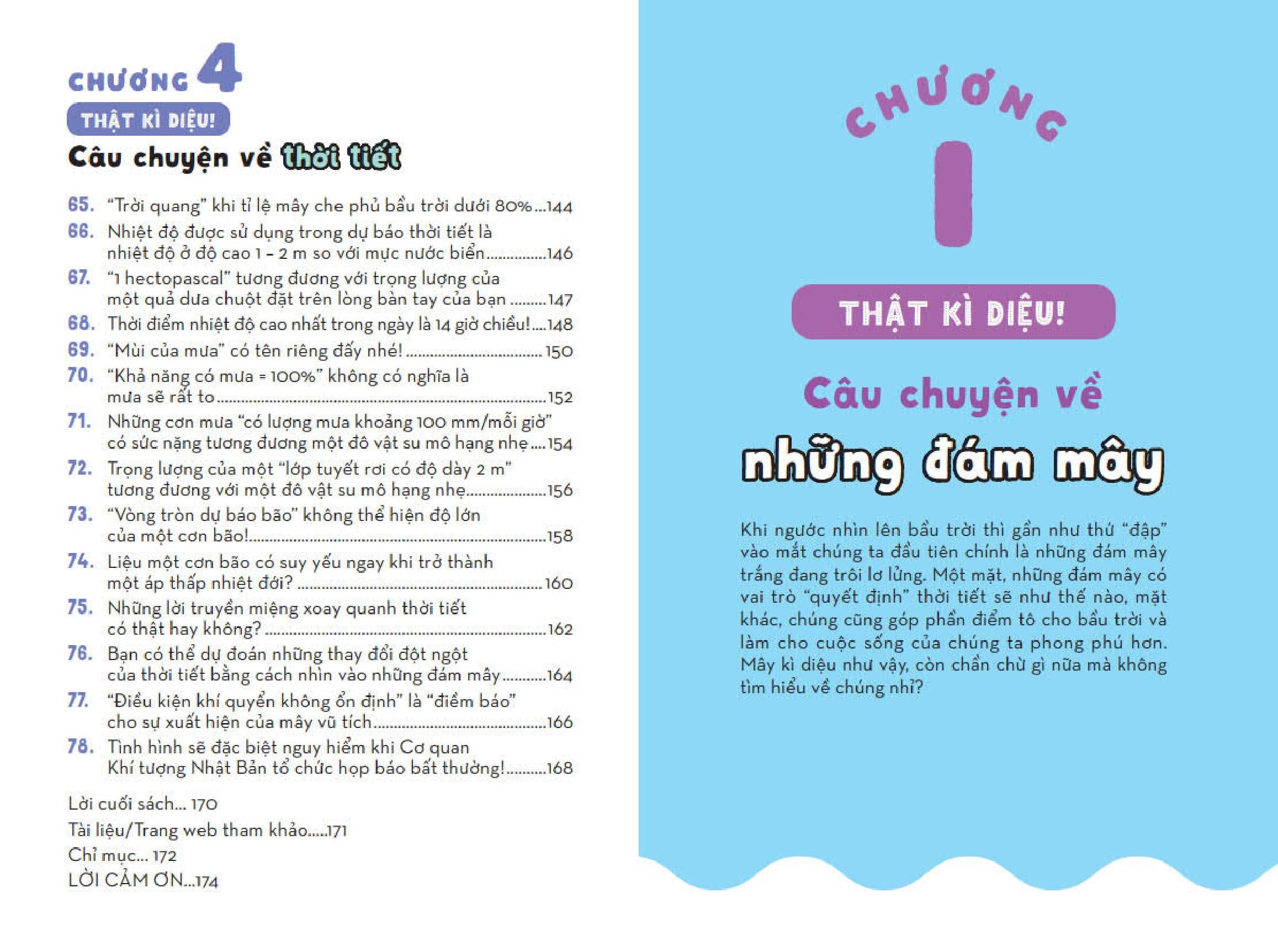 Mua tại TiktokNhững Kì Quan Thời Tiết - Từ Điển Bỏ Túi Về Các Hiện Tượng Thiên Nhiên Kì Thú - Tập 1 Mỗi khi ngước nhìn bầu trời, hẳn mỗi người trong chúng ta đều một lần nghĩ rằng: “Mình muốn leo lên những đám mây khổng lồ quá!”, hoặc “Không biết điểm cuối của cầu vồng ở đâu nhỉ?”. Bầu trời quá đỗi thân thuộc khi ngày ngày chúng ta vẫn ngắm nhìn nó và lắng nghe dự báo thời tiết trên tivi, thế nhưng vẫn còn rất nhiều điều về bầu trời mà chúng ta chẳng hay biết đến. Với cách diễn giải đơn giản, dễ hiểu cùng hình minh họa trực quan, sinh động, bộ sách Những Kì Quan Thời Tiết – Từ Điển Bỏ Túi Về Các Hiện Tượng Thiên Nhiên Kì Thú sẽ giải đáp nhiều thắc mắc của độc giả về bầu trời, các đám mây, các hiện tượng thời tiết vừa quen thuộc, vừa lạ kì. Bộ sách sẽ kéo gần khoảng cách giữa chúng ta với bầu trời và những đám mây, khiến bạn phải sửng sốt thốt lên: “A! Nguyên do của hiện tượng đó là thế!”
