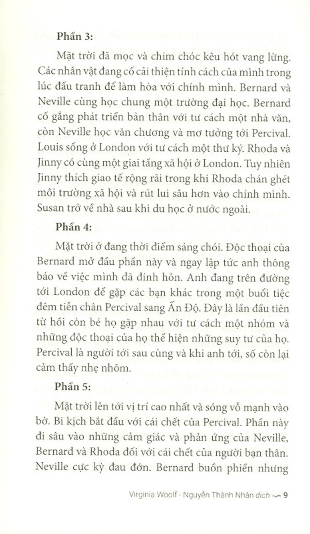 Tôi nghĩ đó là lý do mà dịch giả Nguyễn Thành Nhân, người say mê Virginia Woolf đến độ thắng lướt những e sợ ngại ngần (Ai sợ Virginia Woolf !?), đã đưa "Những lớp sóng" về ngân nga tiếng Việt. Đó là một niềm vui