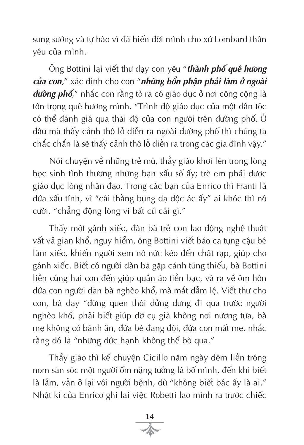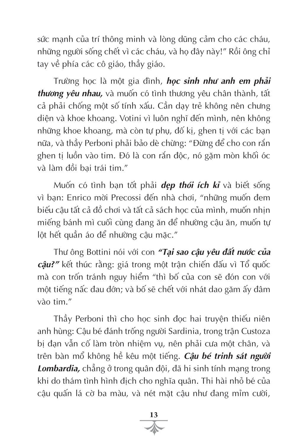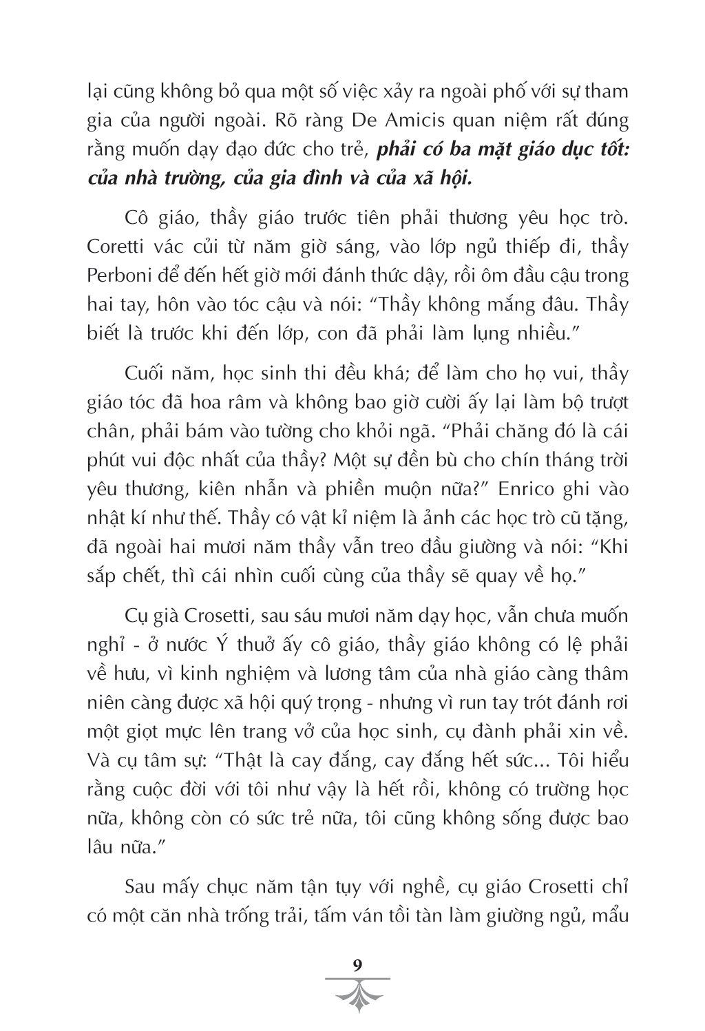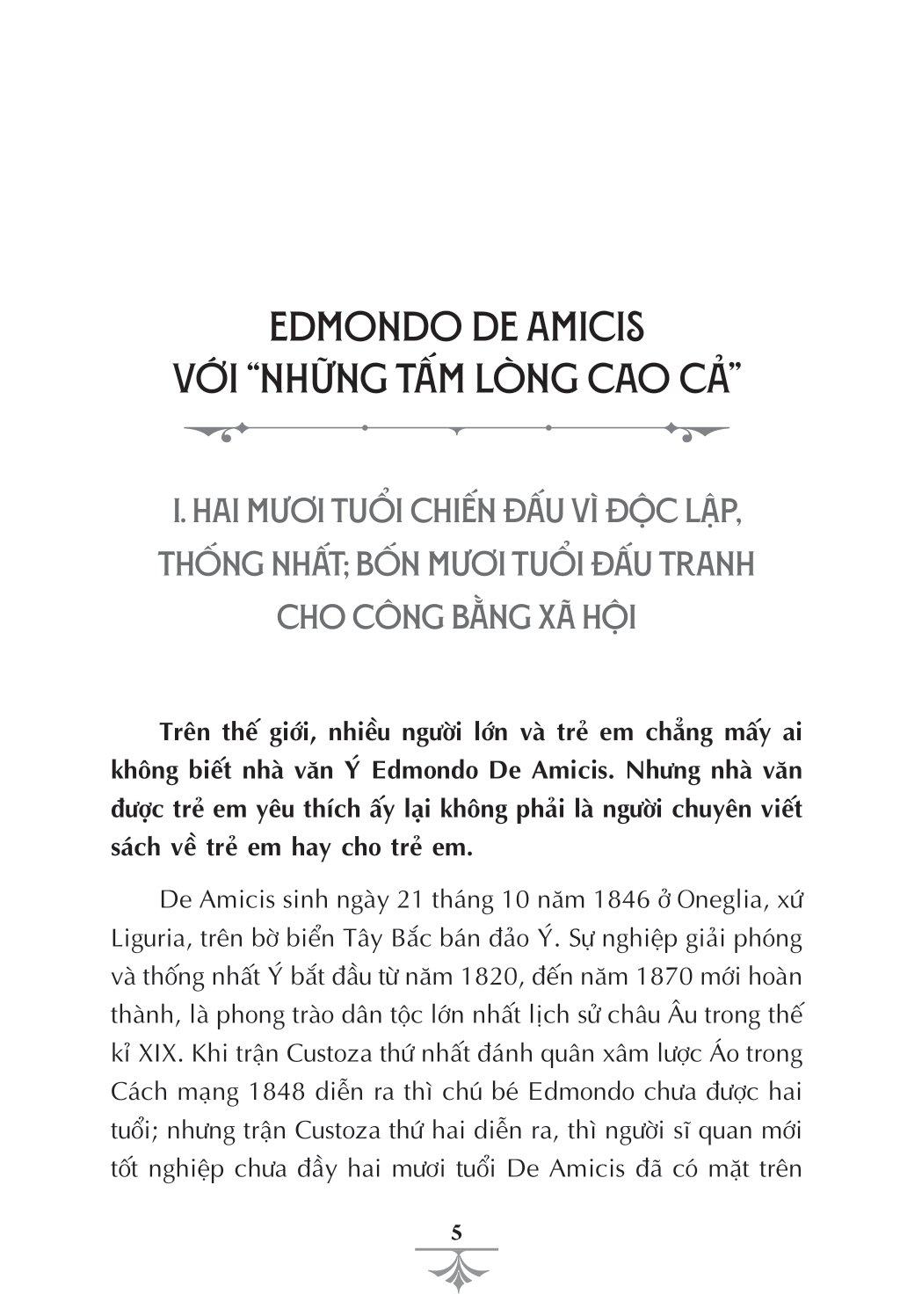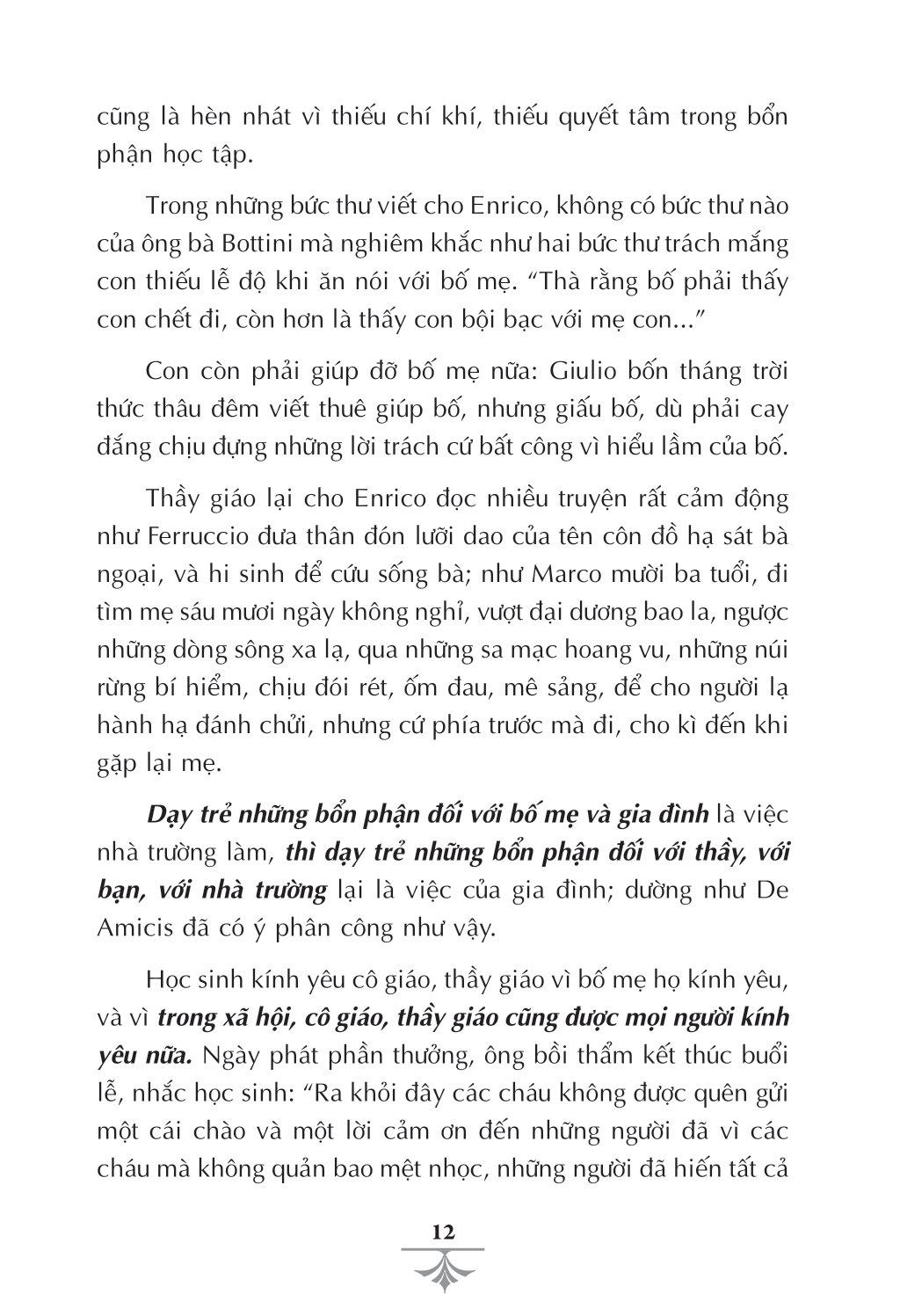Giáo dục phải tiến hành có nghệ thuật, mà nghệ thuật văn chương là công cụ giáo dục tốt. Và, sự thành công của E. D. Amicis là ở đó