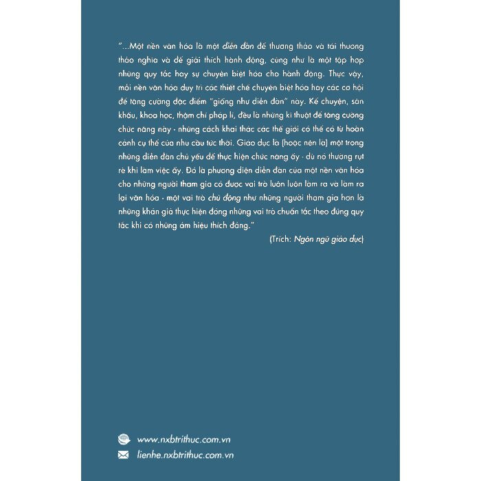 Cũng từ đó, ông đề nghị một thứ “ngôn ngữ” trong nhà trường: “ngôn ngữ của giáo dục là ngôn ngữ của sự sáng tạo văn hóa, không phải ngôn ngữ của sự tiêu thụ kiến thức hay chỉ thụ đắc kiến thức”.
