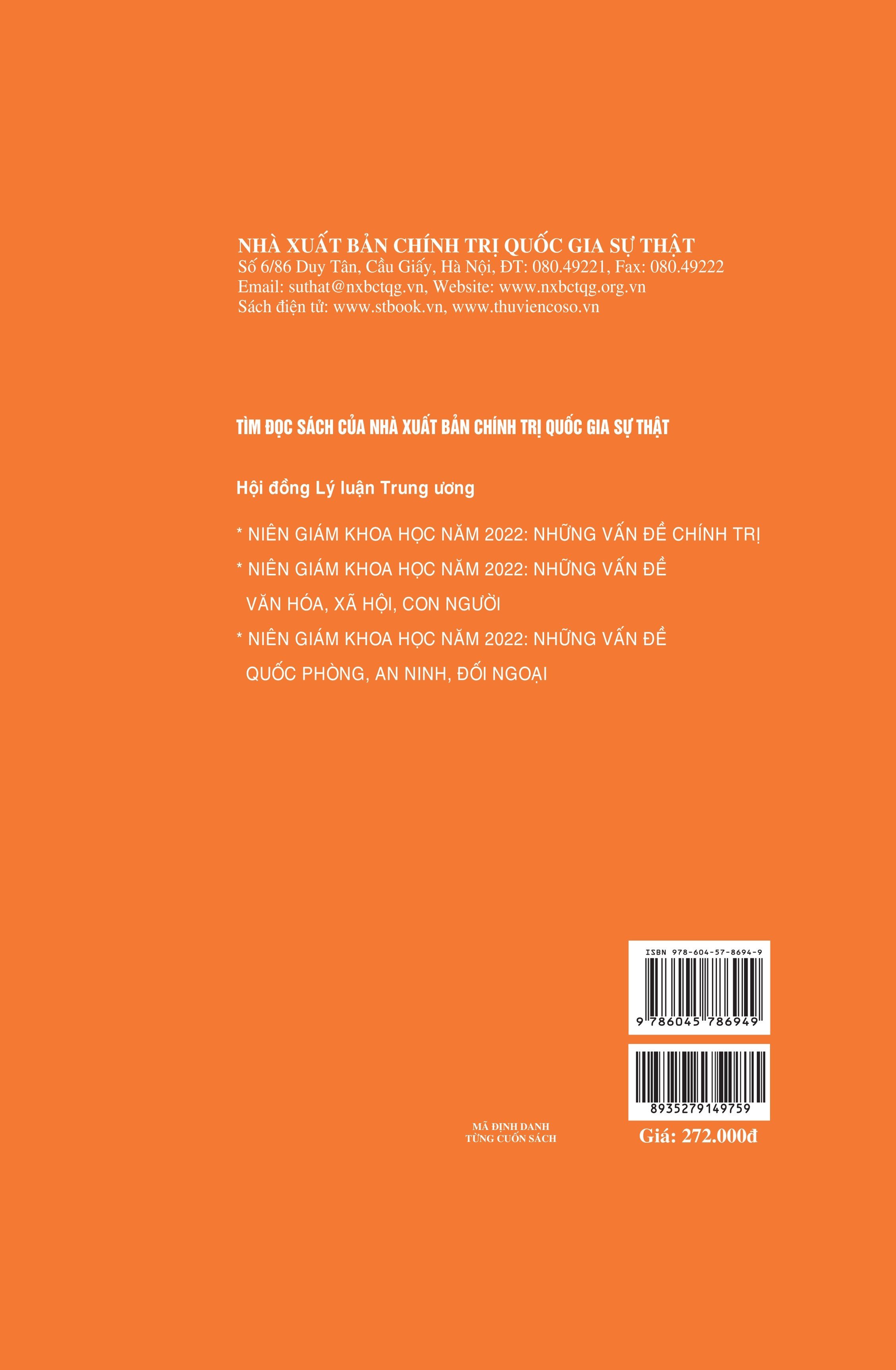 Niên Giám Khoa Học Năm 2021 Bộ sách gồm 4 cuốn: 1. Tập I - Những vấn đề chính trị 2. Tập II - Những vấn đề kinh tế 3. Tập III - Những vấn