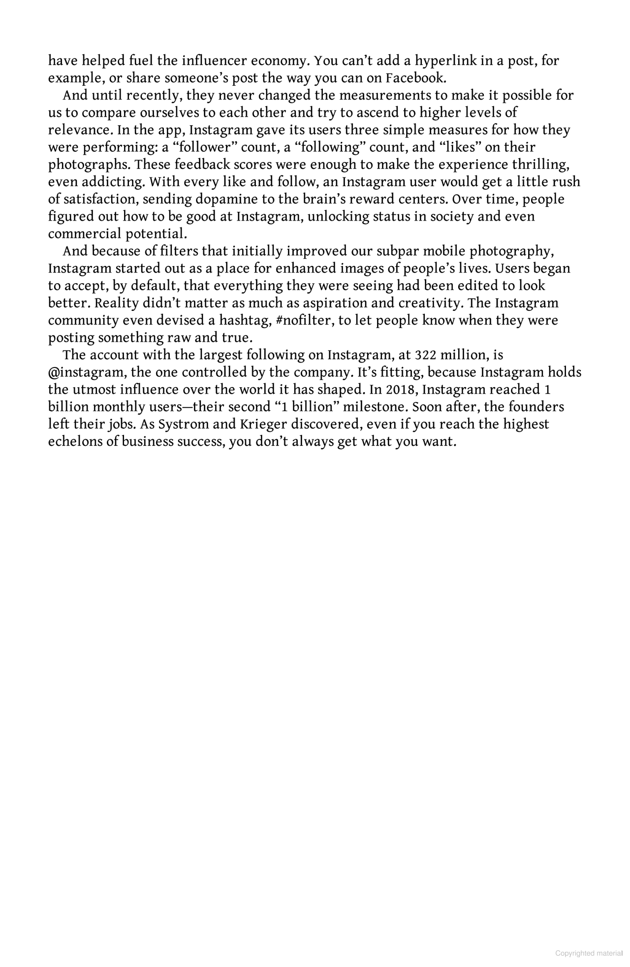 Drawing on interviews with all the key figures at ram, No Filter vividly recreates the rise of the most successful photo app in history: from its origins in a Silicon Valley coffee shop, to its unprecedented billion-dollar acquisition by ok, to its founders' dramatic clashes with their new boss, Mark Zuckerberg. Along the way, it explores how ram has changed society - encouraging businesses to prioritise their aesthetic above all else, forging a new economy of digital entrepreneurs, and rewiring how a generation thinks about celebrity and success.