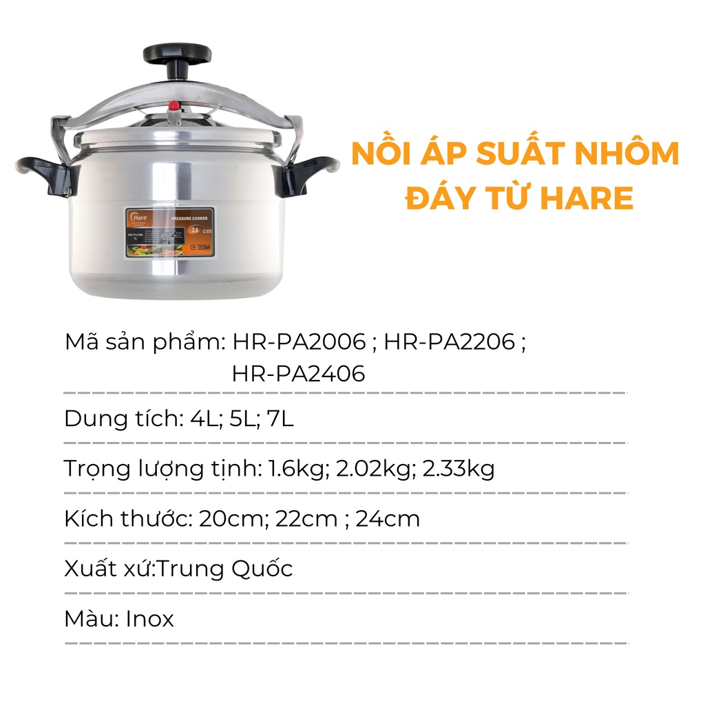 ✨Nồi áp suất nhôm đáy từ 3 kích thước 20 22 24cm -hàng chính hãng thương hiệu Hare - bảo hành 12 tháng