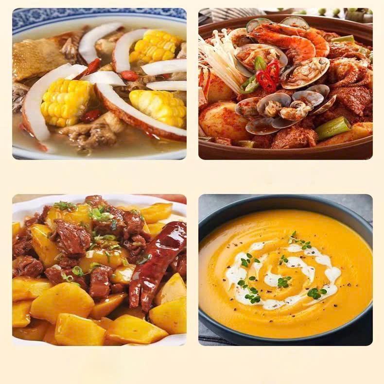 Nồi Hầm 4 trong 1:Thiết kế đa năng cho việc hầm gà, cháo, nồi chiên và xào nấu.
