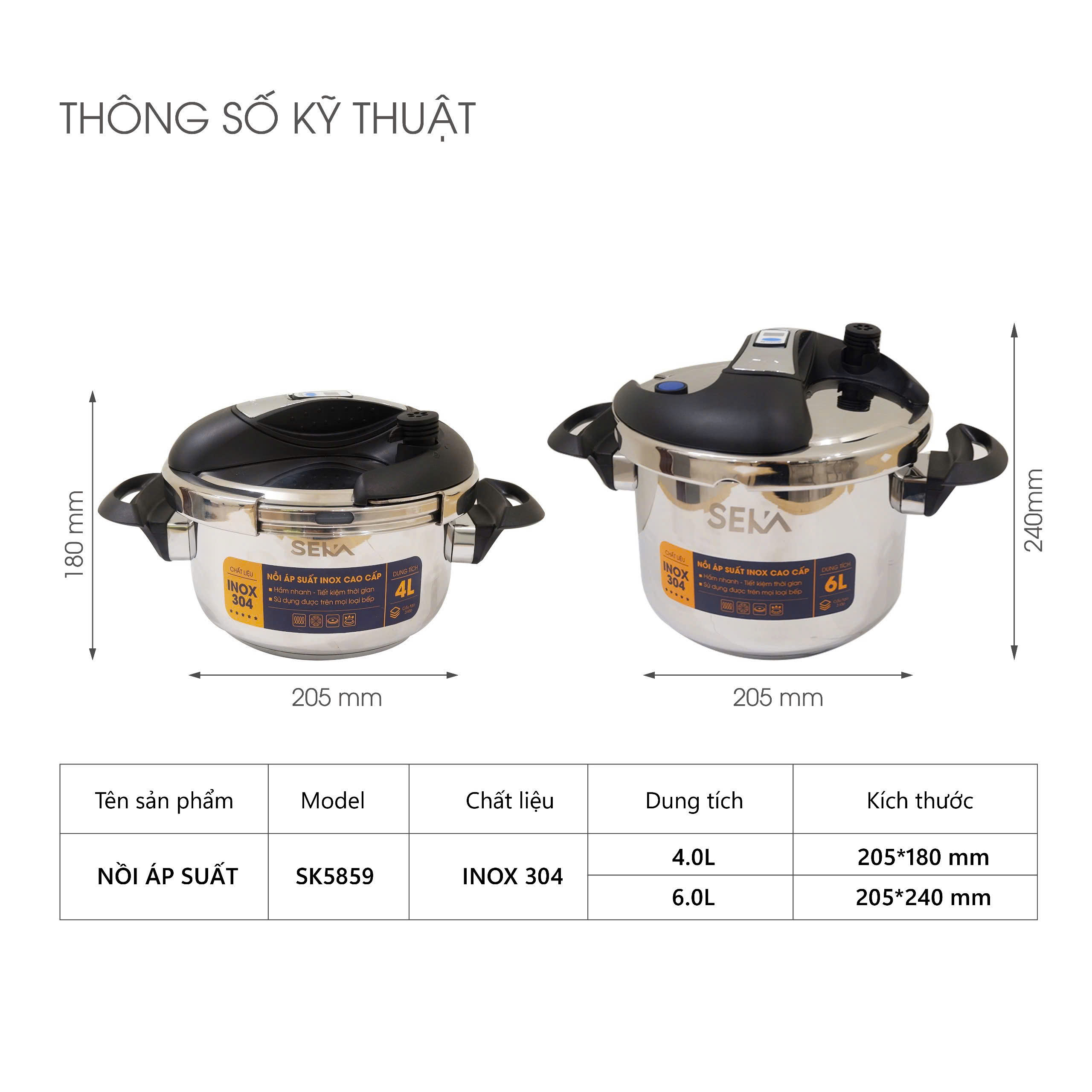 Thông tin sản phẩm Nồi Áp Suất Inox 304 SEKA :