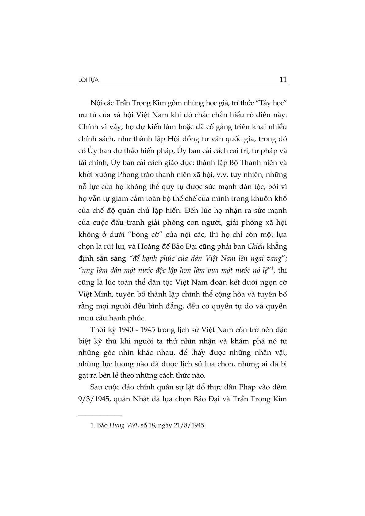 Nhận thức đúng đắn về bản chất, vai trò, vị trí lịch sử của Nội các Trần Trọng Kim để khẳng định: Cuộc Cách mạng Tháng Tám năm 1945 ở Việt Nam là cuộc cách mạng mang tính chất dân tộc và tính chất dân chủ sâu sắc