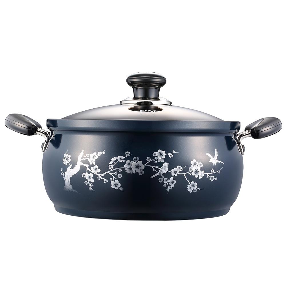 Nồi nhà bếp (loại nồi Casserole size lớn) nhôm thuần khiết cao cấp hiệu PoongNyun Series Fosya Mei IH dầy 2.5mm chống dính, chống trầy xước màu xanh đen họa tiết hoa mai với công nghệ tráng men hiện đ...