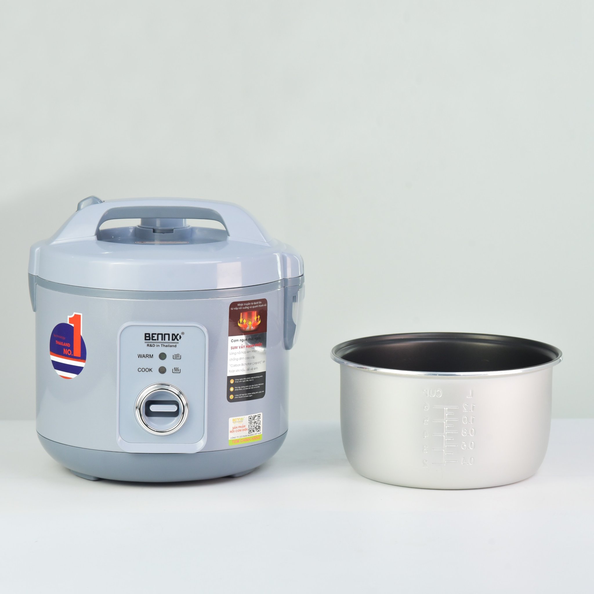 - Bảo hành: 12 tháng Nồi cơm điện 1.2L Bennix là một giải pháp hoàn hảo cho bất kỳ ai muốn có một bữa cơm ngon lành và an toàn mỗi ngày.