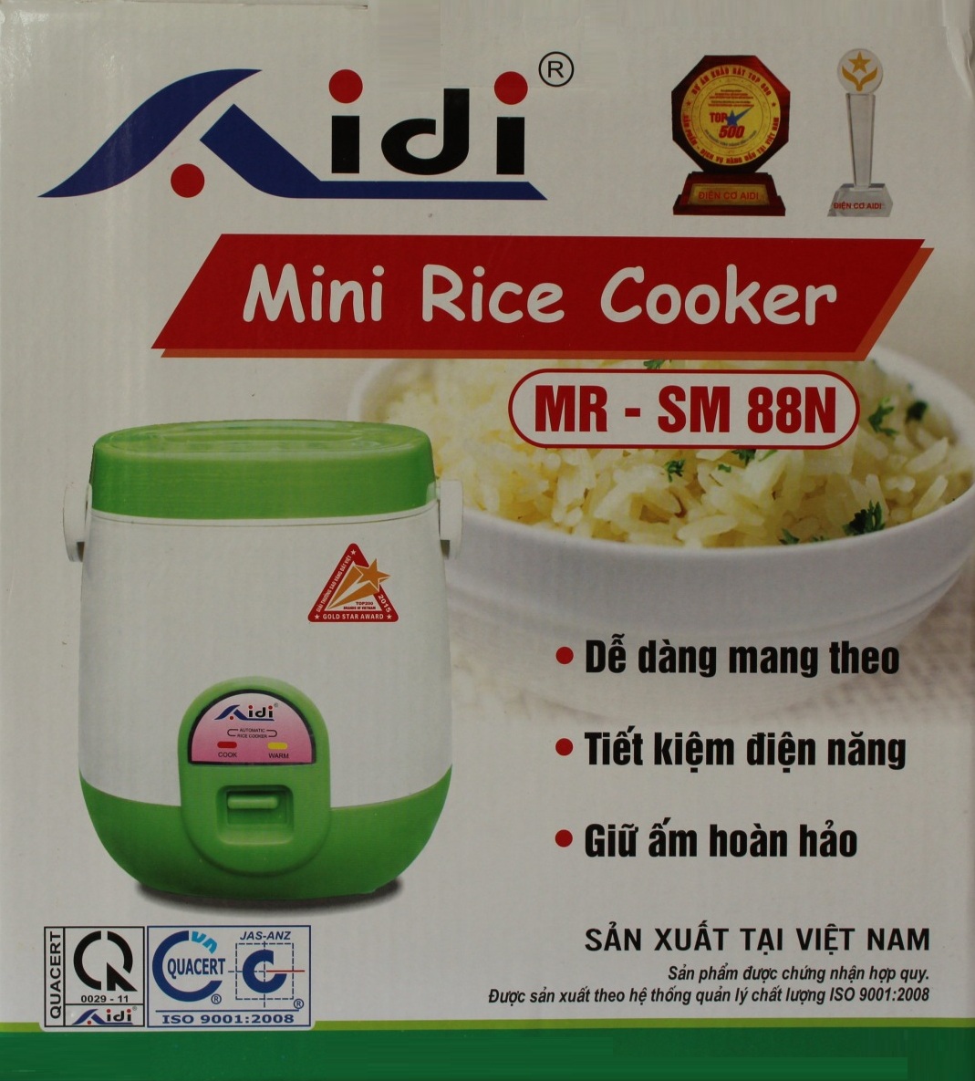 Nồi Cơm Điện Cặp Lồng Mini Thân Nhựa Aidi MR-SM 88N (0,6 lít) - Màu Ngẫu Nhiên - Chính Hãng ĐẶC ĐIỂM NỔI BẬT Đường kính mâm nhiệt lớn, tỏa nhiệt đều, cơm ngon hơn