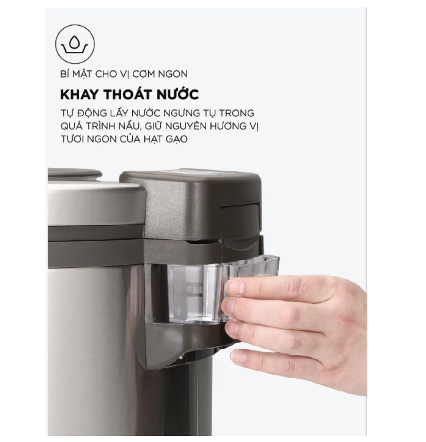 Nồi cơm nắp gài 6.3 lít Cuckoo CR-3555/BKSTVNCRCV được trang bị khay thoát nước thông minh tiện tháo rời, tự động lấy nước ngưng tụ trong quá trình nấu để giữ nguyên hương vị tươi ngon của hạt gạo.