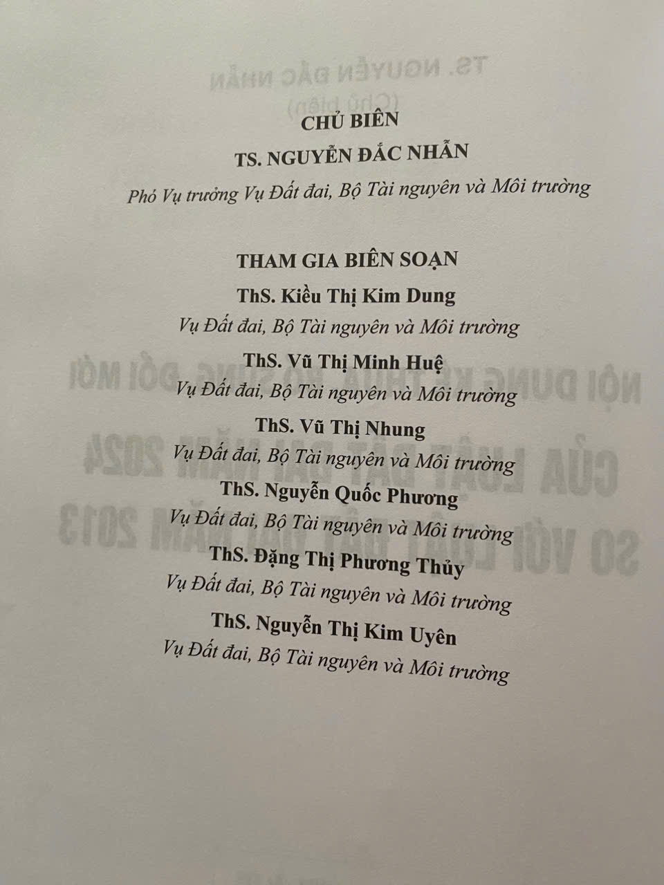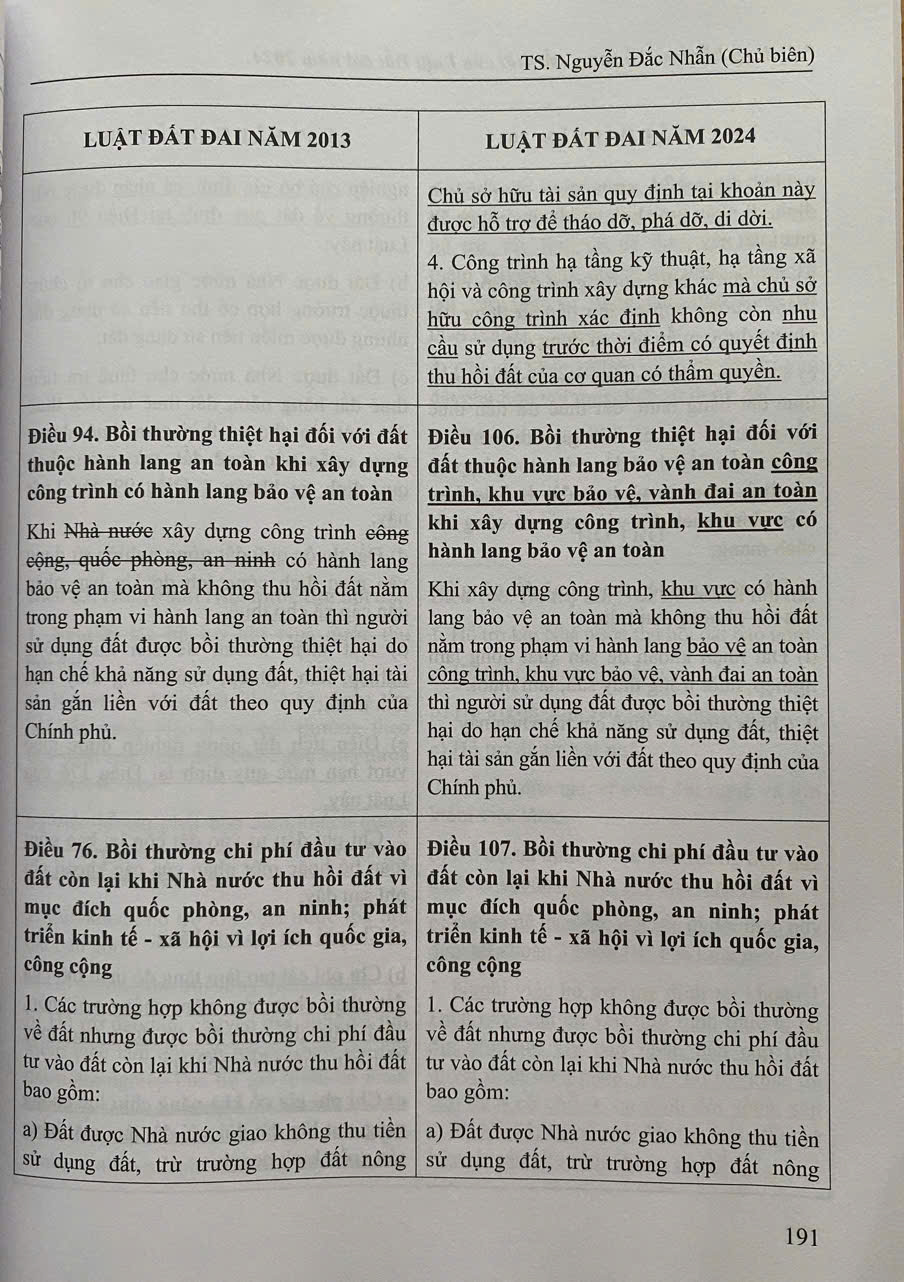 Các tác giả đã dày công thể hiện rõ, cụ thể những nội dung được kế thừa, nội dung bị lược bỏ của Luật Đất đai năm 2013; những nội dung mà Luật Đất đai năm 2024 sửa đổi, bổ sung.