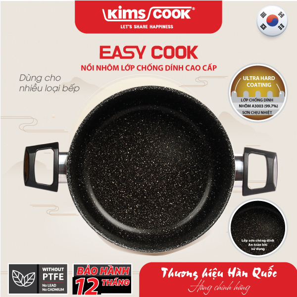Nồi Easy Cook hợp kim nhôm chống dính vân đá Kims Cook Thương hiệu: KIMS COOK Dòng sản phẩm: EASY COOK Xuất xứ: Hàn Quốc Sản xuất: Việt Nam Chất liệu: Hợp kim nhôm A3003,