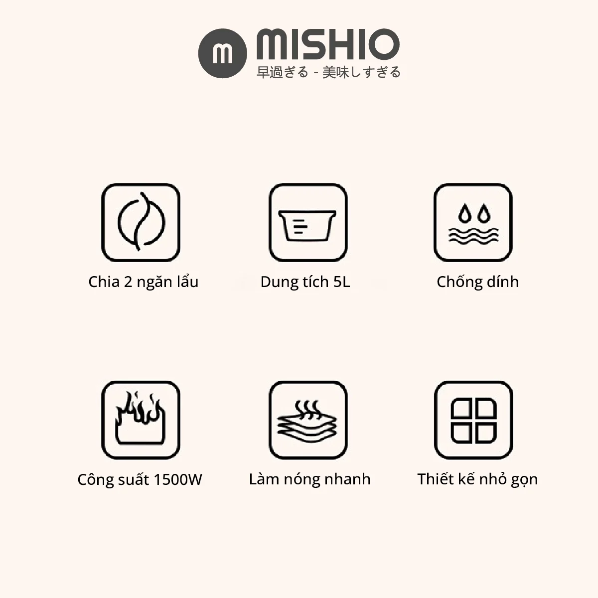 ✨Nồi lẩu điện 2 ngăn Mishio MK112 5L - Hàng chính hãng