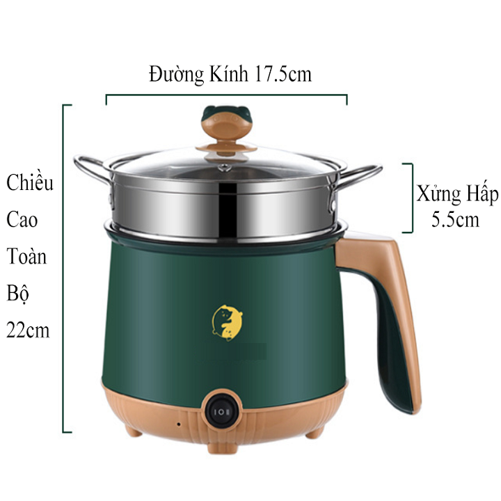 Nồi lẩu điện Đa Năng 18CM SHANBAN Chống Dính- 2 chế độ nấu + Kèm Giá Hấp inox - hàng xịn như video