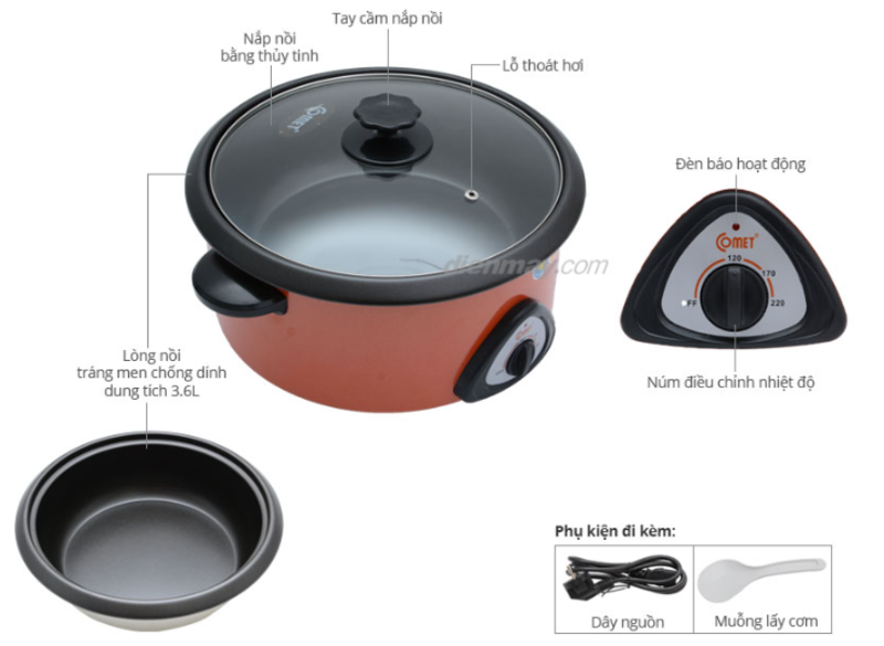 Nồi lẩu điện COMET đầy đủ tất cả các chức năng | Điện Nguyên Hùng Phát.