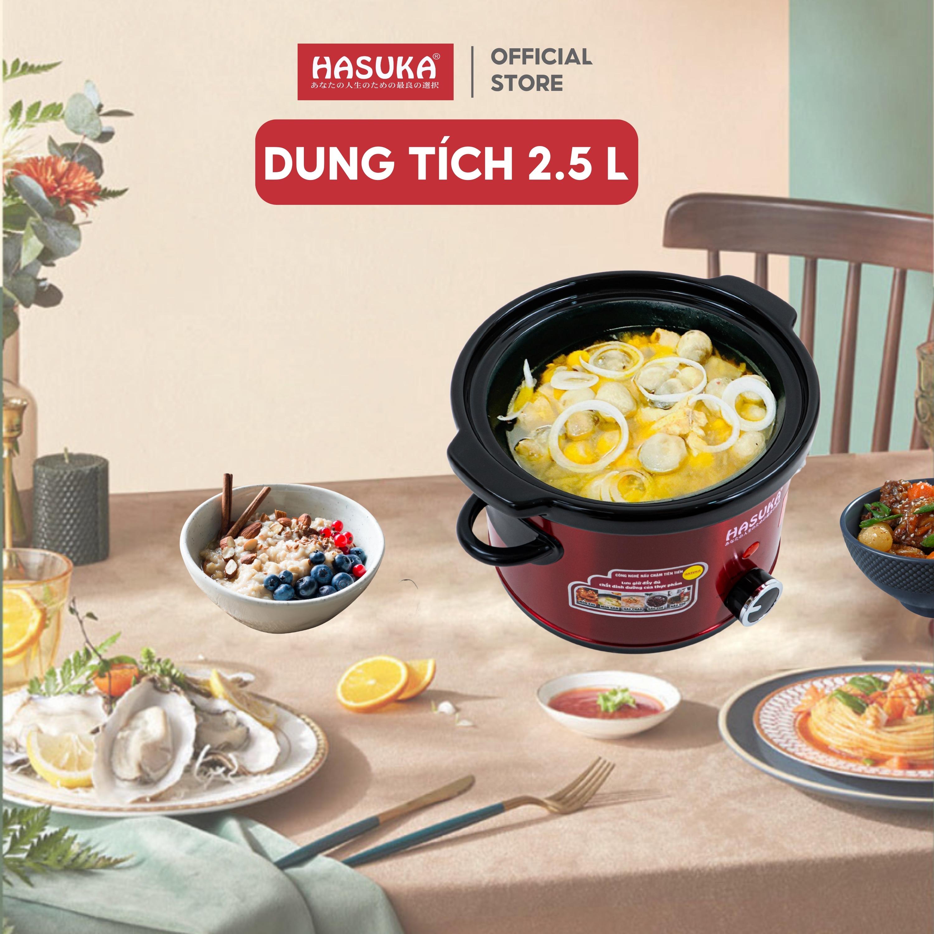 Nồi nấu chậm HASUKA HSK-118 dung tích 2.5L, công suất 160W đa năng với 3 chế độ nấu, lòng nồi được làm từ gốm ceramic