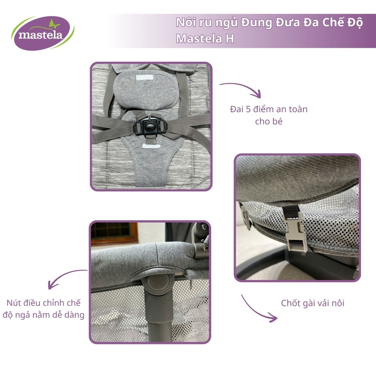Nôi ru ngủ Đung Đưa Đa Chế Độ Mastela H - điều khiển cảm ứng cho bé 0 đến 36 tháng 08403/08401