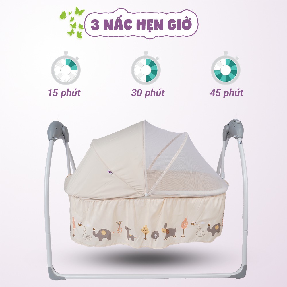 Nôi có 3 nấc hẹn giờ: 15 phút, 30 phút và 45 phút với đèn báo.